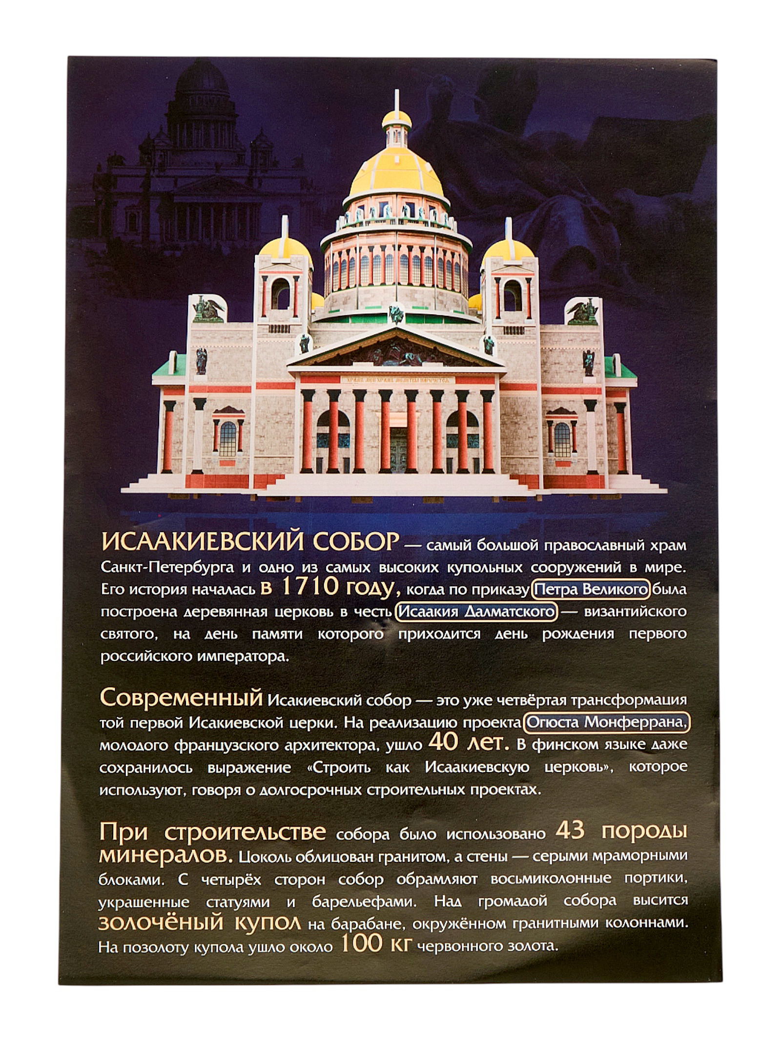Конструктор 3D "Исаакиевский собор", 76 деталей, 2x21x29.7 см., UNICON, Китай
