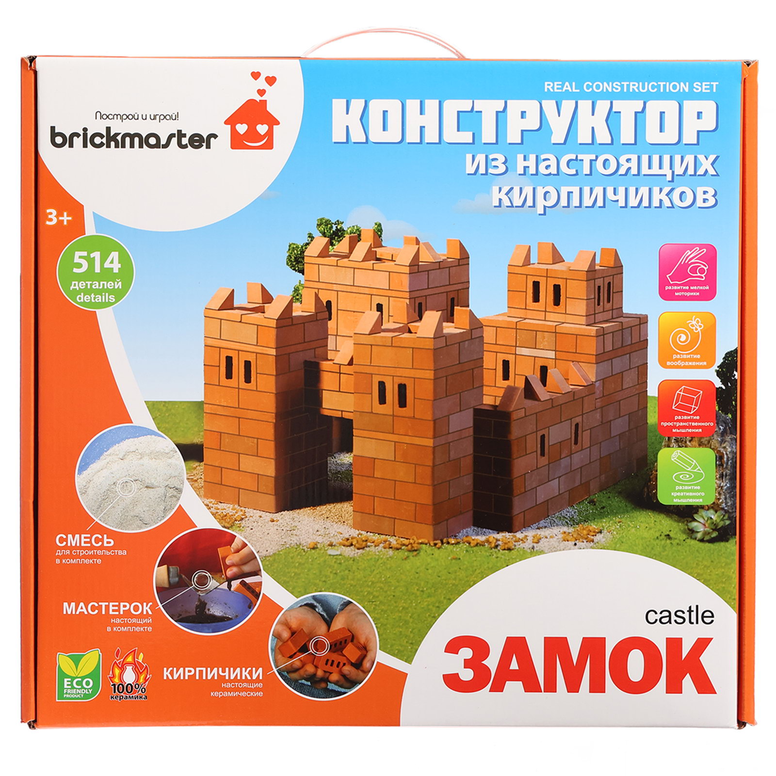 Размер упаковки: 37 x 35 x 9.5 см. Количество элементов: 514 Возраст: От 3 лет Для кого: Унисекс Вид: Из кирпичиков Тематика конструктора: Архитектура tnved: 9503007000 Brickmaster – это уникальный эко-конструктор для детей, состоящий из настоящих кирпичиков! Способствует развитию мелкой моторики, воображения, игровой деятельности, формированию сенсорных эталонов цвета, величины и формы, пространственного ориентирования, комбинаторных способностей. Кирпичики, арки и другие архитектурные детали сделаны из натуральной обожженной глины по той же технологии, что и настоящие, только отличаются меньшим размером. Соединить между собой детали будущей постройки позволит экологически безопасная специальная смесь, которая состоит из речного песка и кукурузного крахмала. Она не только обладает всеми свойствами настоящего цемента, но также позволяет при необходимости несколько раз перестраивать конструктор: достаточно готовую постройку поместить на 2-3 часа в воду, и все кирпичики снова отделятся друг от друга. Специальный мастерок, входящий в комплект, поможет удобно нанести цемент на детали. Он точно такой, как у взрослых строителей, только меньшего размера. | ||