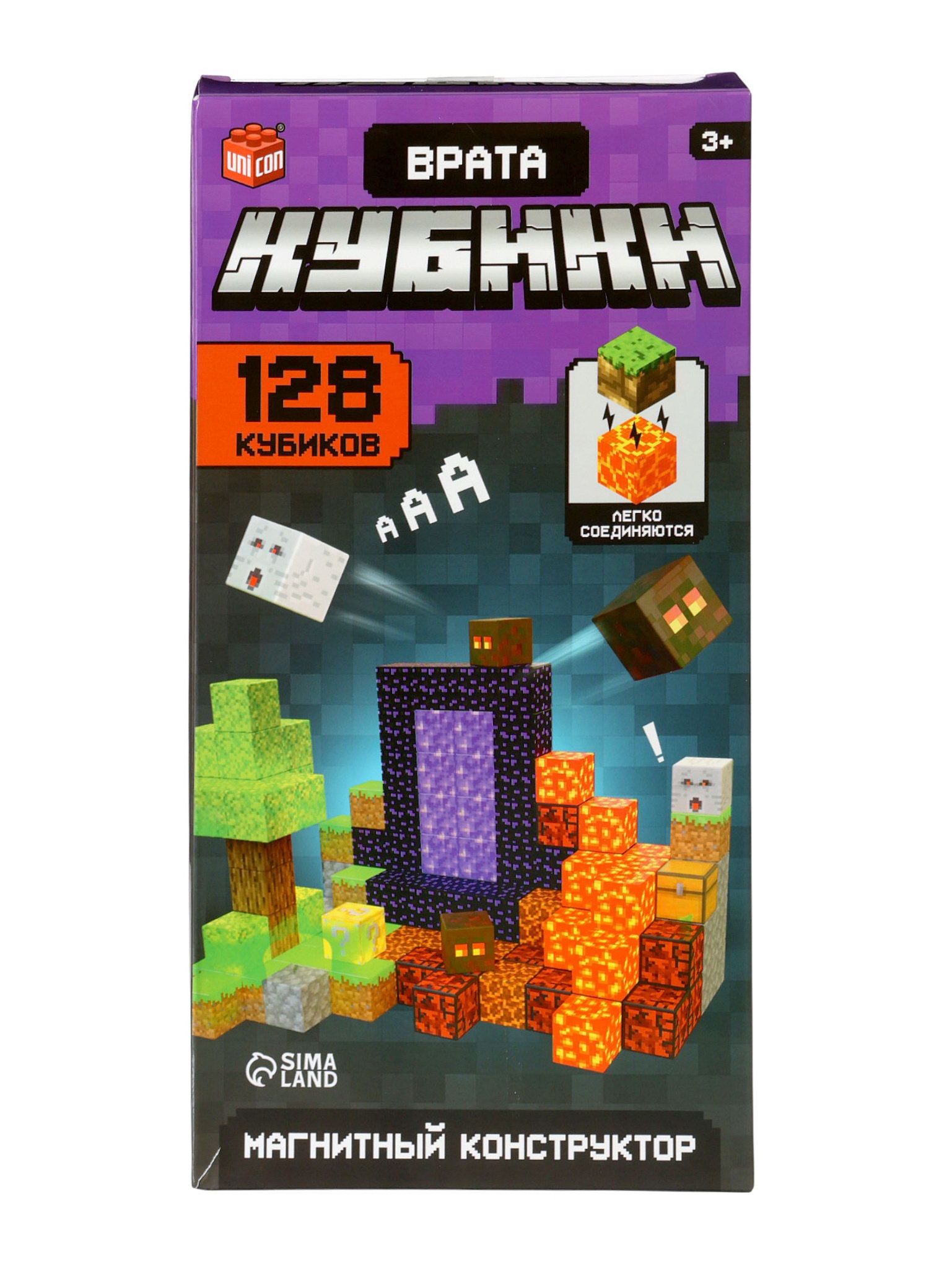 Конструктор магнитный "Врата. Мой мир", 128 кубиков, 8x8x16 см., UNICON, Китай