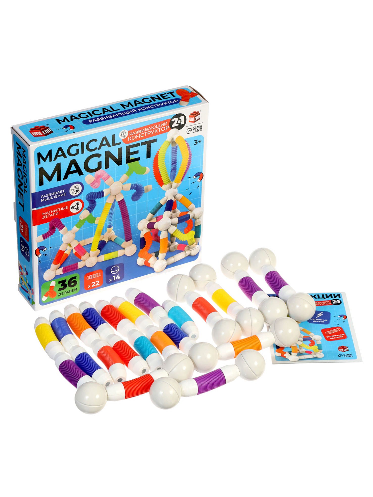 Конструктор магнитный "Развивающие трубы", 36 деталей, UNICON, Китай