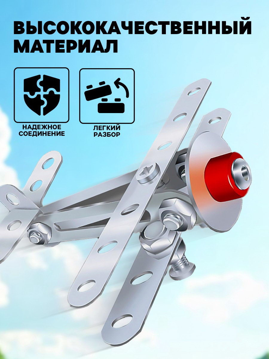 Конструктор металлический "Самолётик", 27 деталей, 2.5x14.5x11 см., Китай