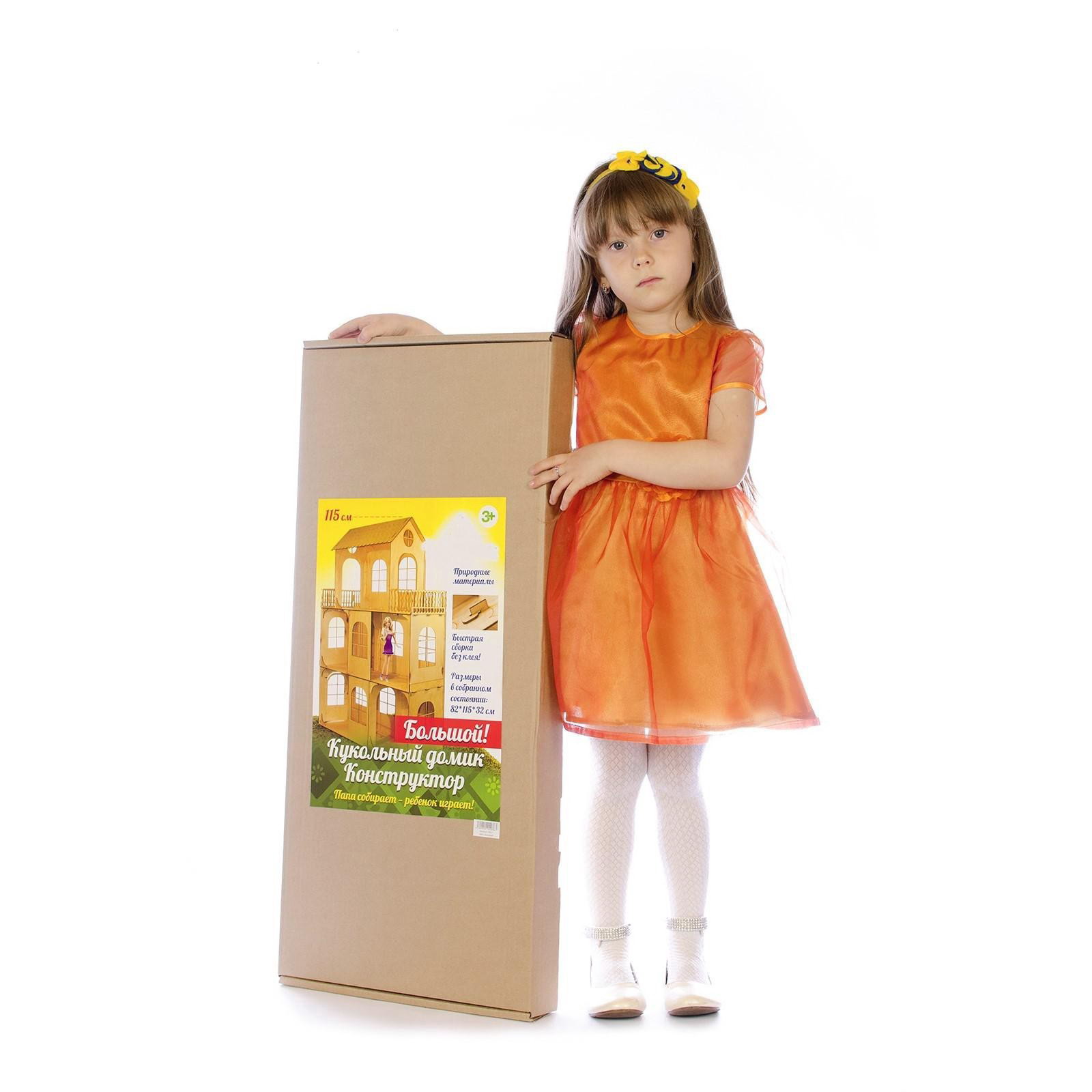 Размер упаковки: 39 x 6 x 88 см. Для кукол ростом, см: 30 Для кого: Для девочки Возраст: От 3 лет Вид: Дом Складной: Да Вид упаковки: Коробка картонная Вид упаковки: Коробка картонная tnved: 9503004000 Тематика праздника: 8 Марта Цвет: Бежевый Соберите из деревянного конструктора большой кукольный дом для любимых игрушек! Трёхэтажный дом выглядит очень роскошно: в доме 5 уютных больших комнат и 2 террасы, на каждом окне есть карниз и гардина для штор. С балконов 3 этажа кукольные жители смогут любоваться окрестностями. Особенности