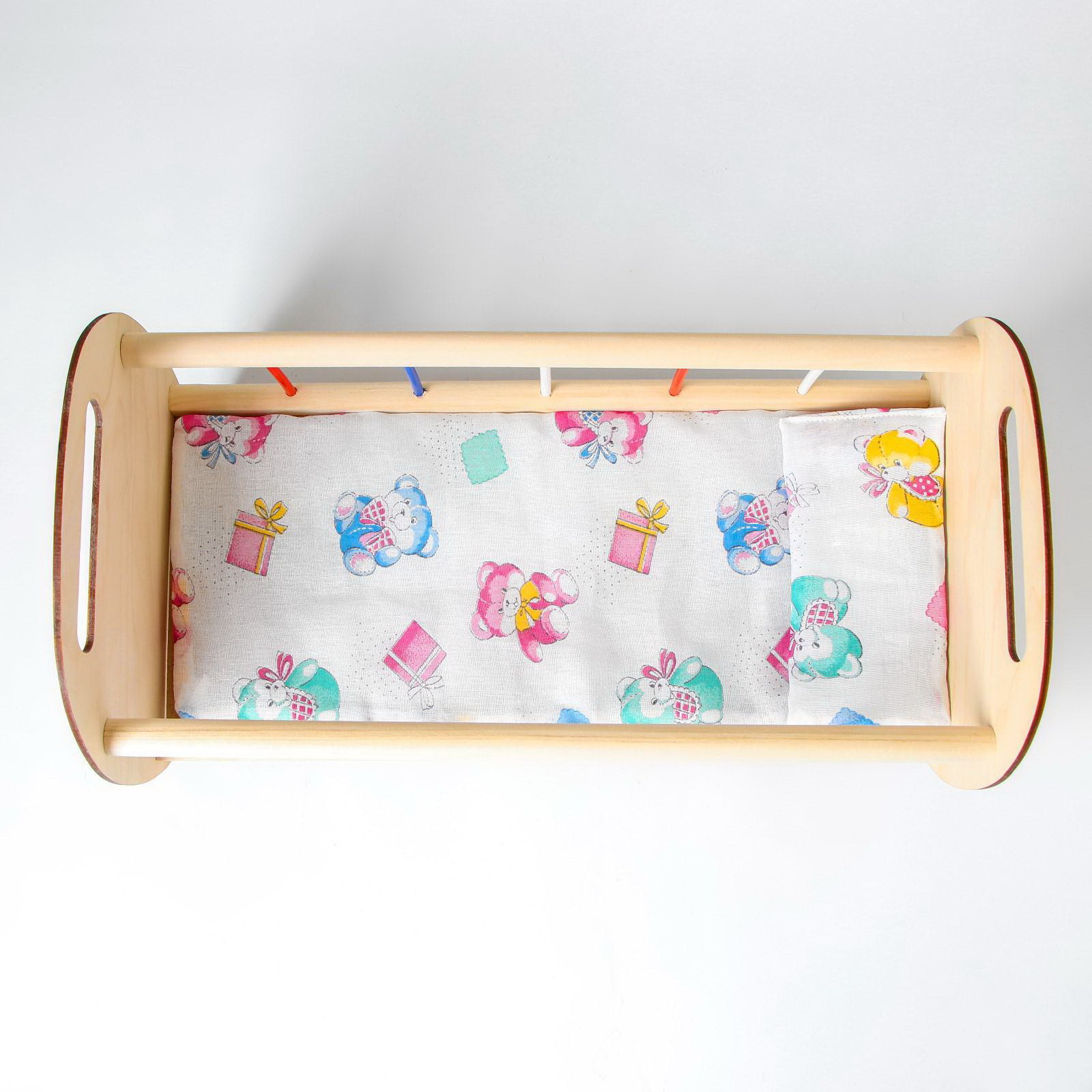 Кроватка для кукол, постельное белье в комплекте, 23x23x40 см., Марич, Россия