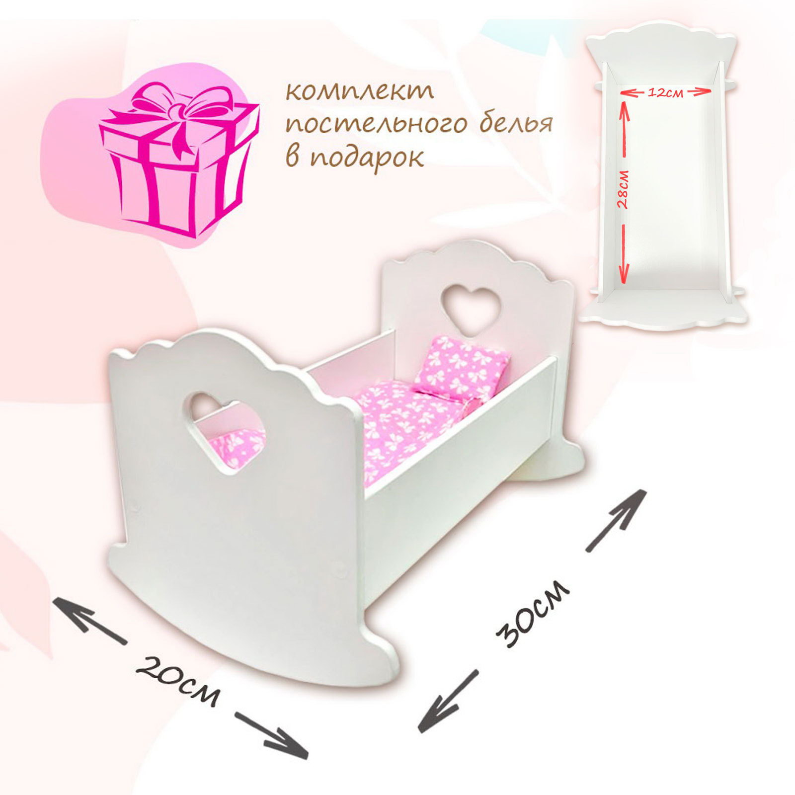 Кроватка - люлька "Сердечко", с постельным бельем, 30 см, белая, Pemakids, Россия