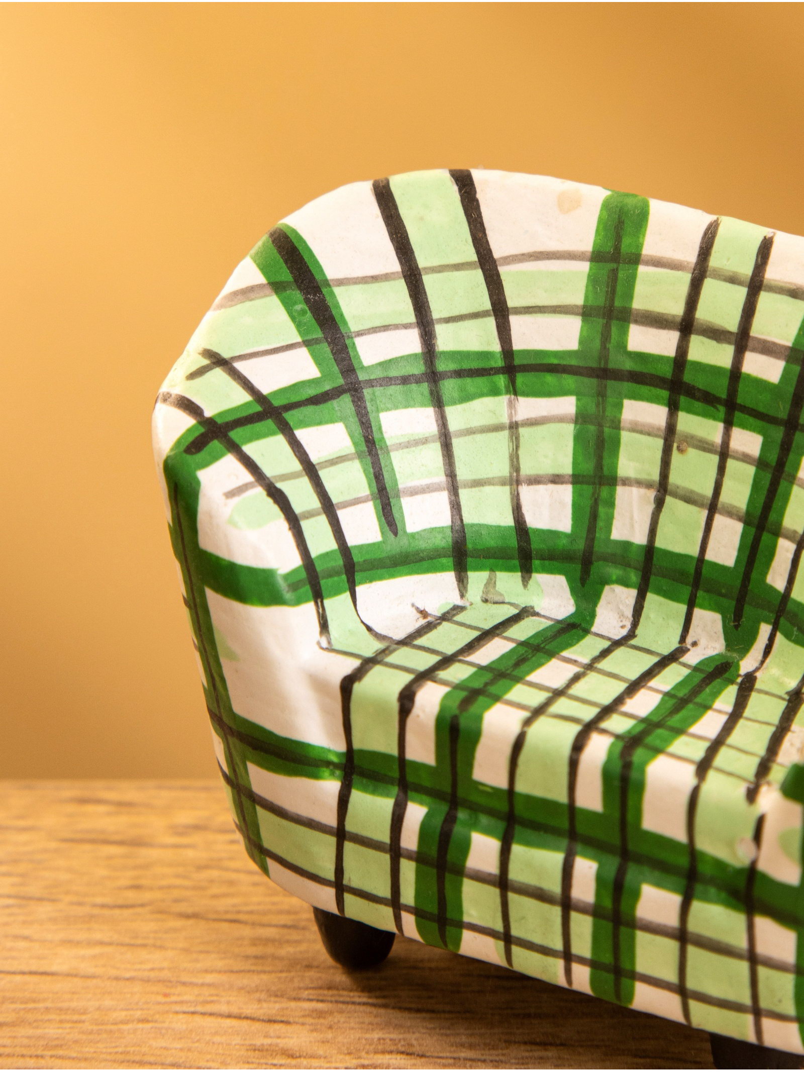 Мебель для кукол "Кресло клетчатое", 6x3.5x5 см, дерево, зелёная, 3.5x6x5 см., Индонезия