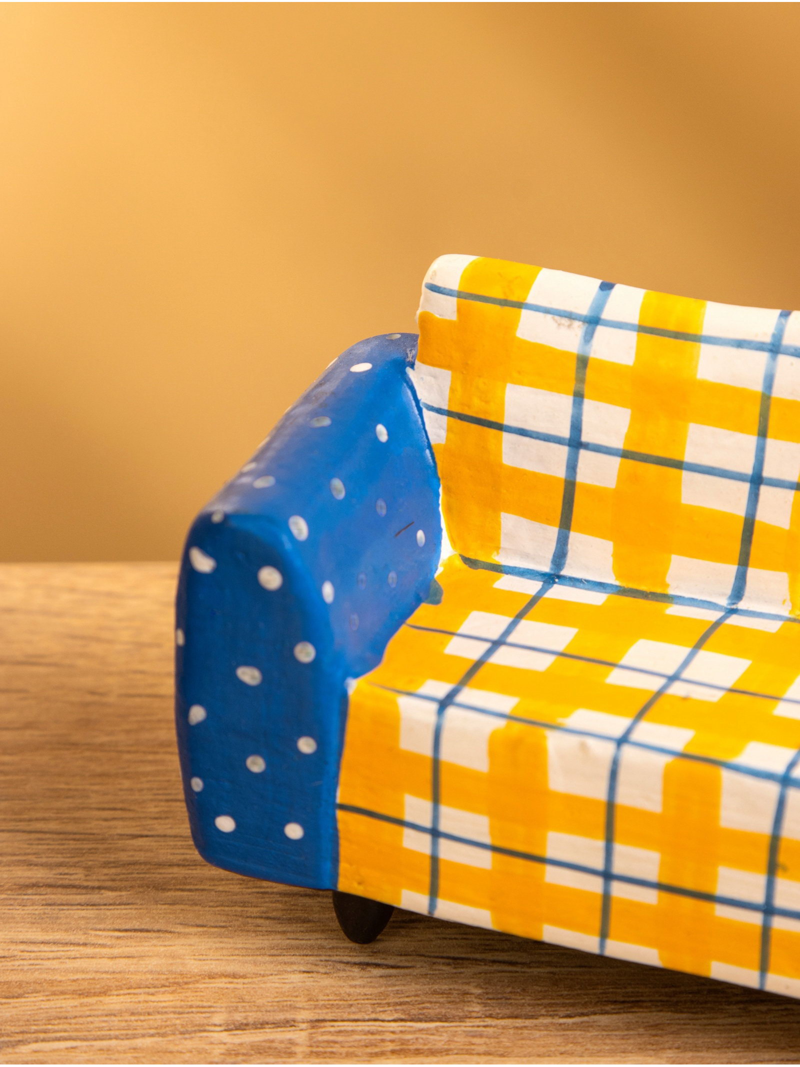 Мебель для кукол "Кресло", 10x4x5.5 см, дерево, жёлто-синяя, 4x10x5.5 см., Индонезия