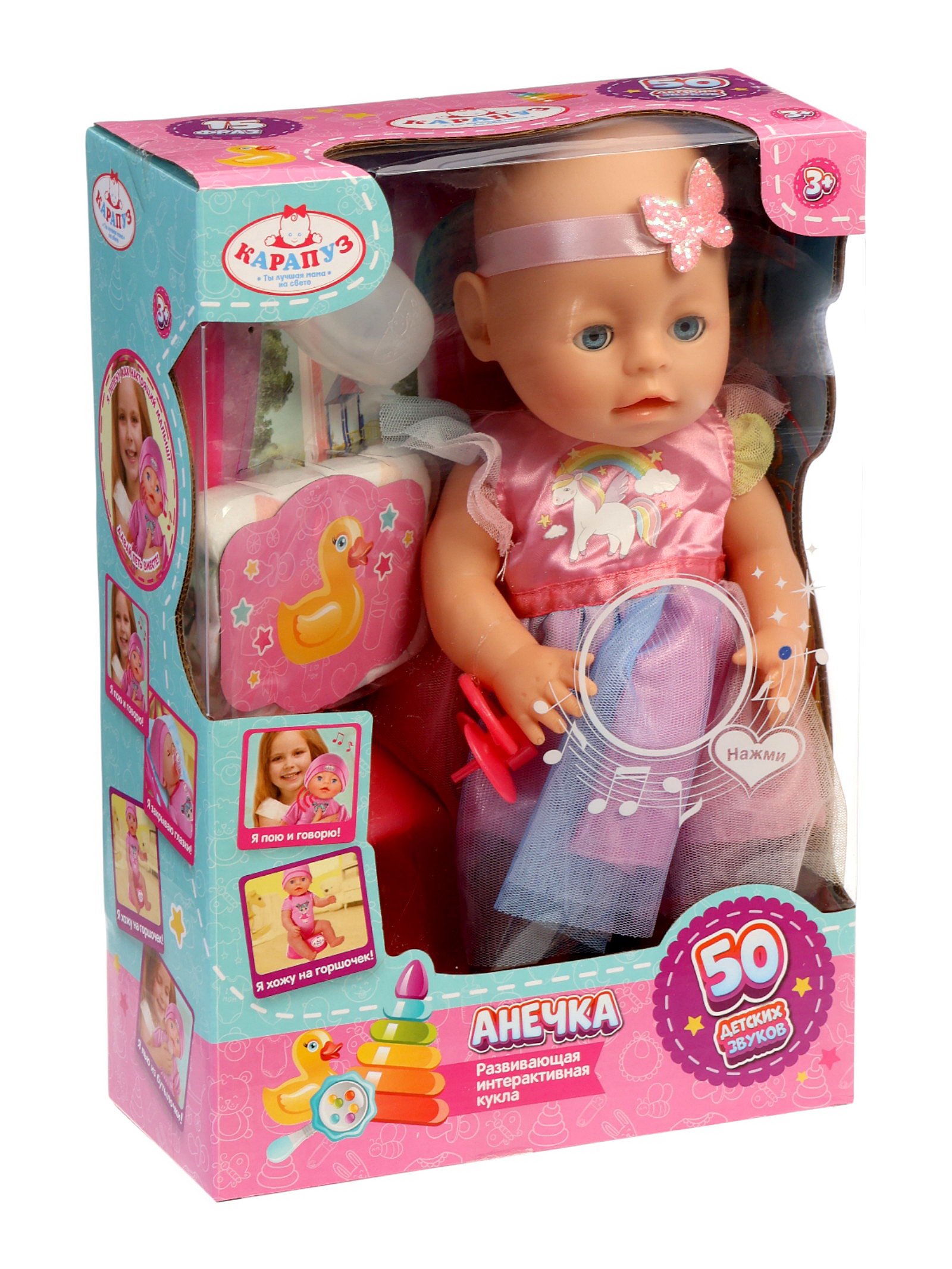 Кукла интерактивная "Анечка" в нарядном платье 30см пьет, 50 звуков Y30BB-MID-KITTEN-25-RU, Карапуз, Китай