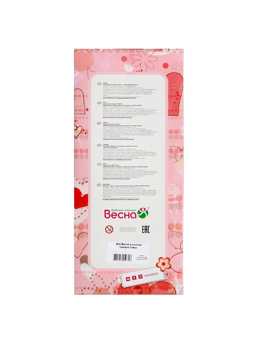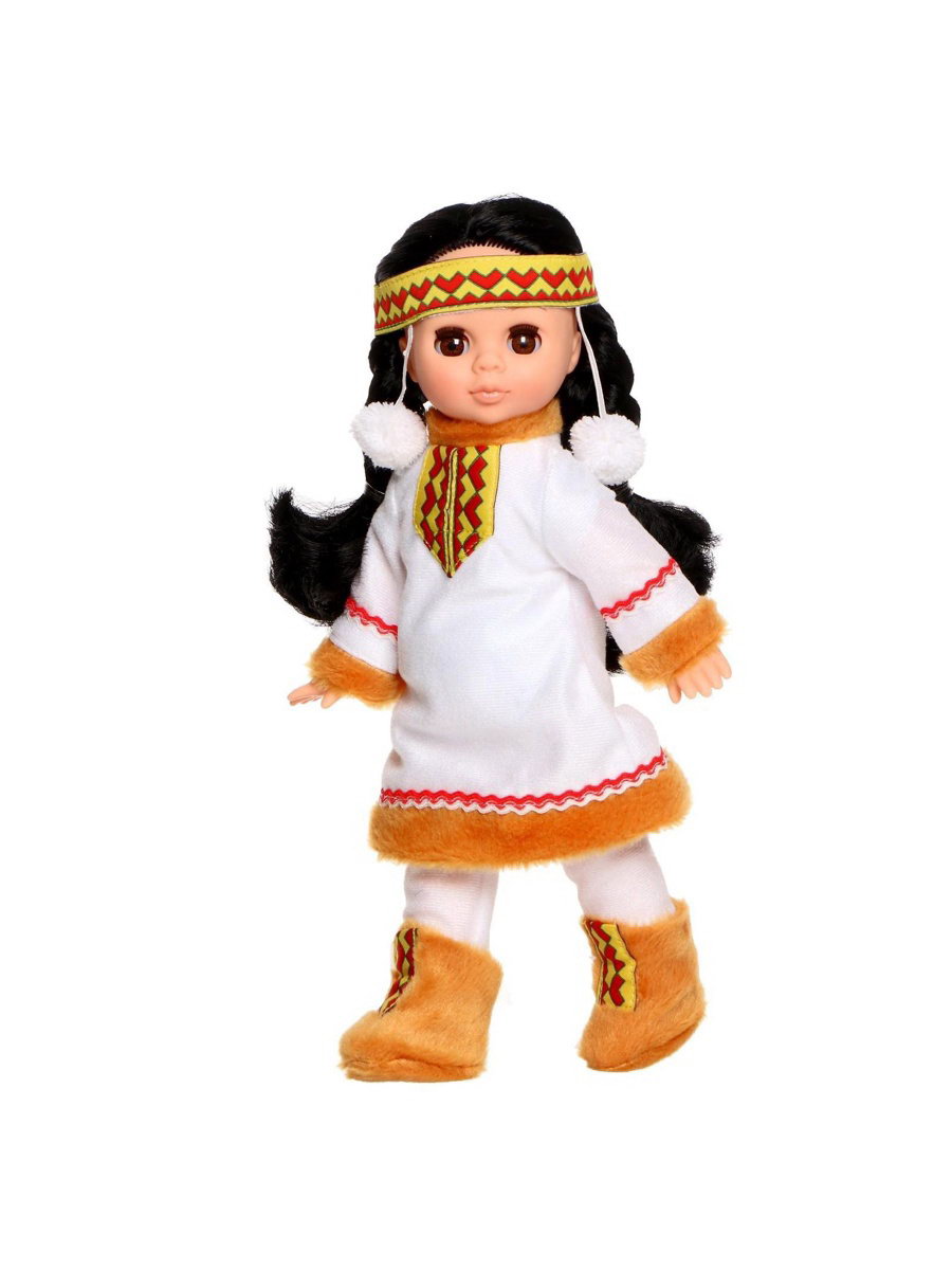 Размер упаковки: 10 x 34 x 15 см. Для кого: Для девочки Для кого: Для девочки tnved: 9503002000 Температурное ограничение: Нет Пол куклы: Девочка Особенности куклы: Без особенностей Возраст: От 3 лет Высота, см: 30 Вид упаковки: Коробка картонная Вид: Классическая Кукла "Эля" в костюме народов Севера станет настоящей подружкой для ребёнка. Кукла одета в стилизованный национальный костюм Севера. Особенности