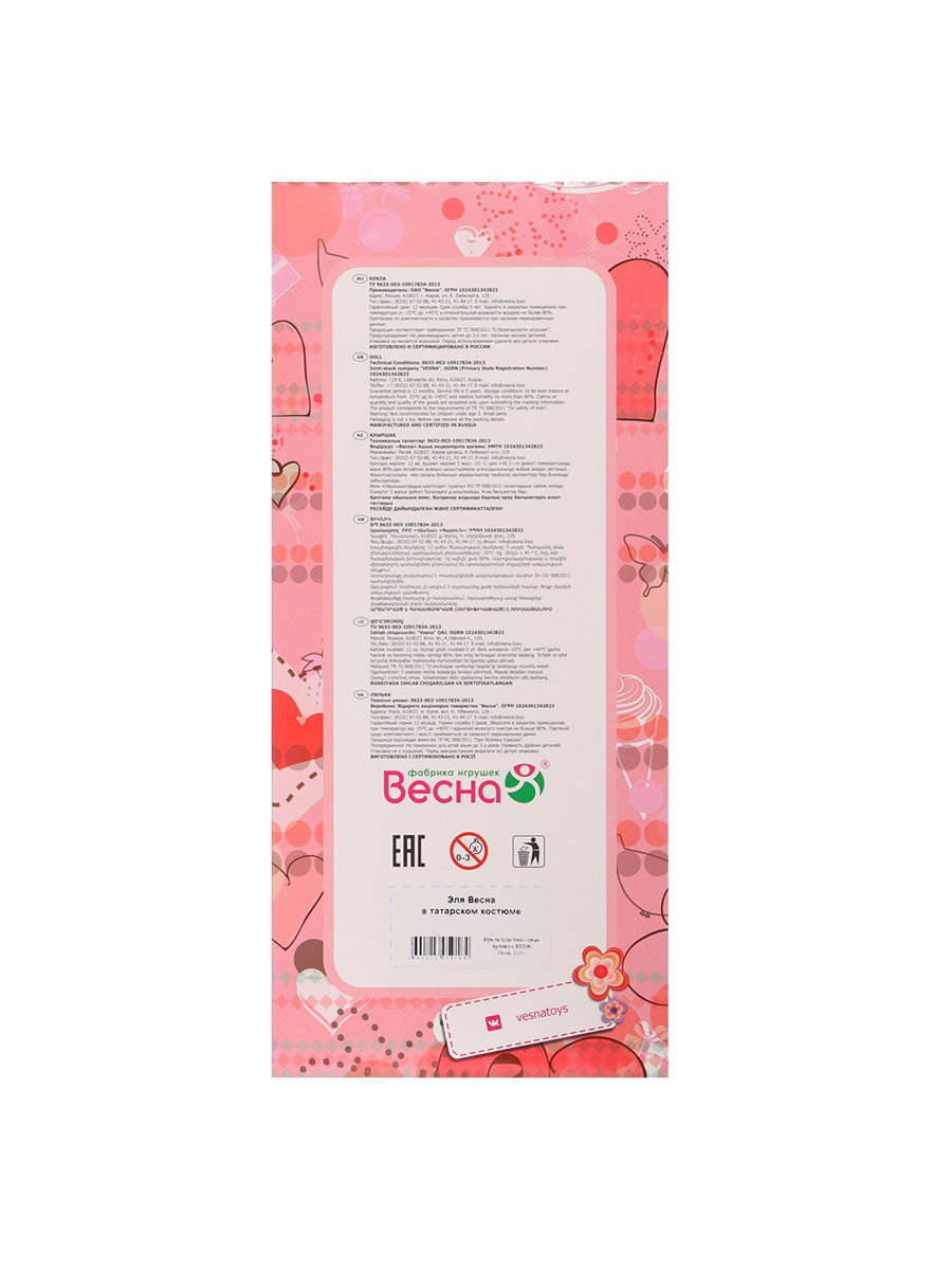 Размер упаковки: 15 x 9.5 x 34 см. Для кого: Для девочки Для кого: Для девочки tnved: 9503002000 Температурное ограничение: Нет Пол куклы: Девочка Особенности куклы: Без особенностей Вид упаковки: Коробка картонная Возраст: От 3 лет Высота, см: 30.5 Вид: Классическая Кукла "Эля в татарском костюме" станет настоящей подружкой для ребёнка. Кукла одета в стилизованный национальный костюм Республики Татарстан. Особенности