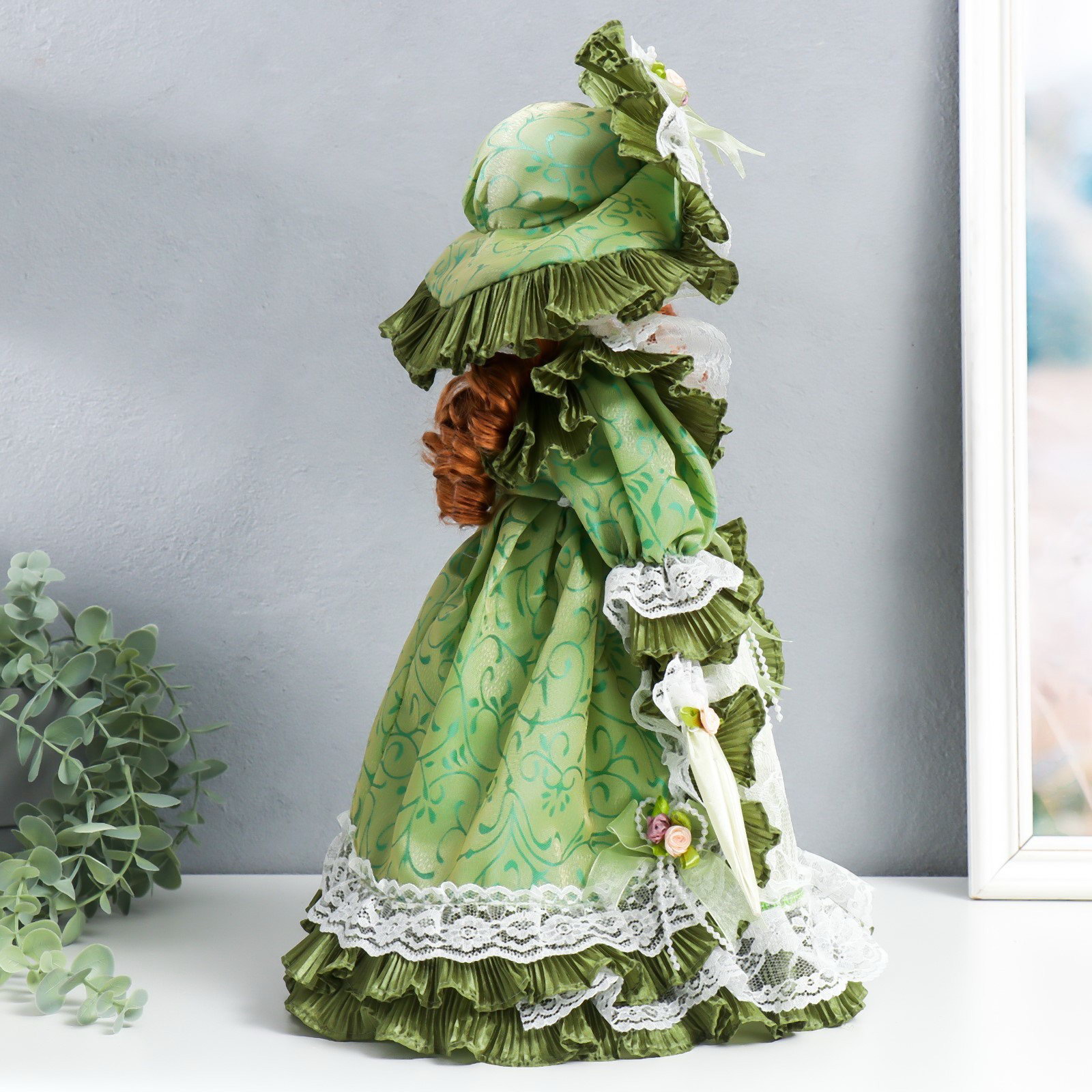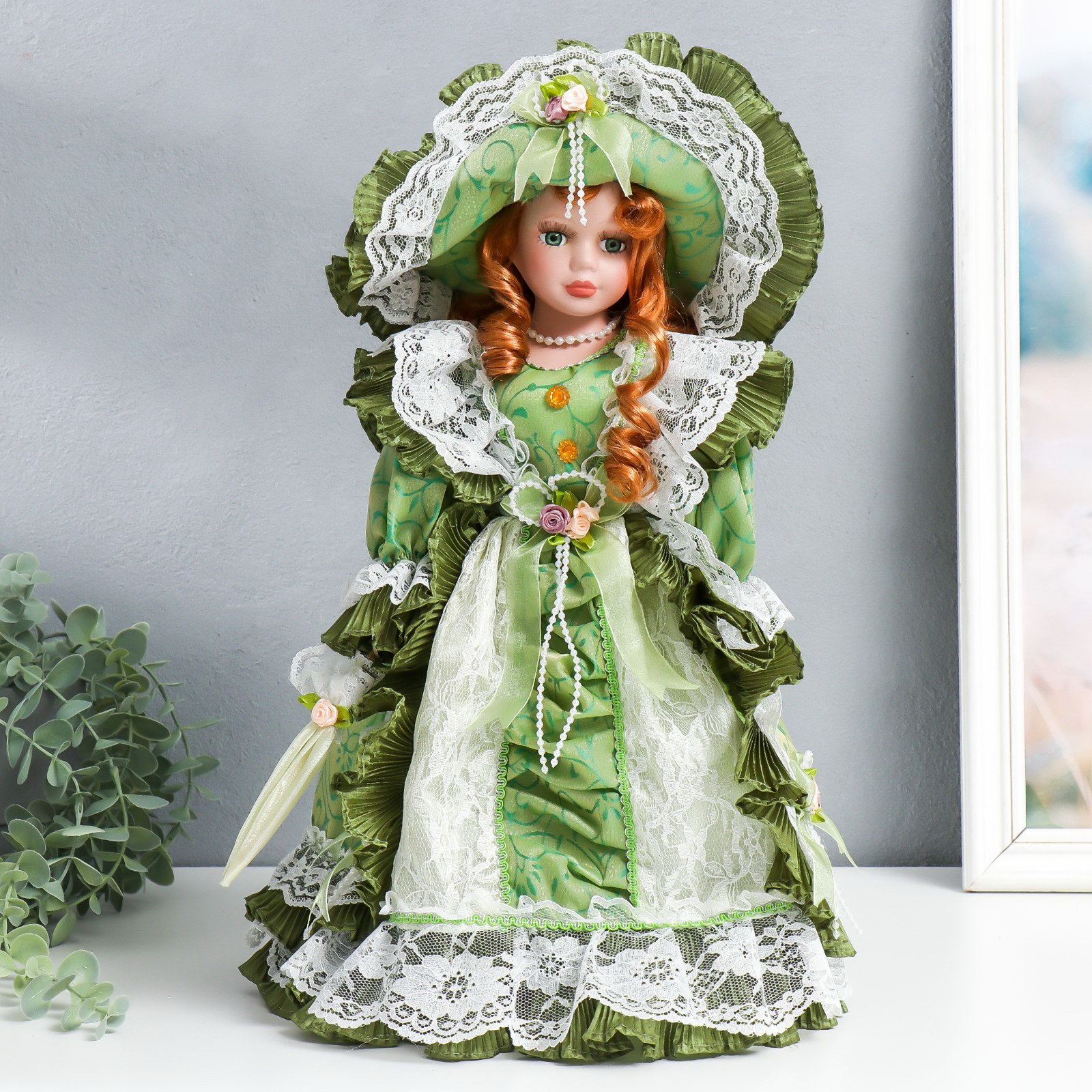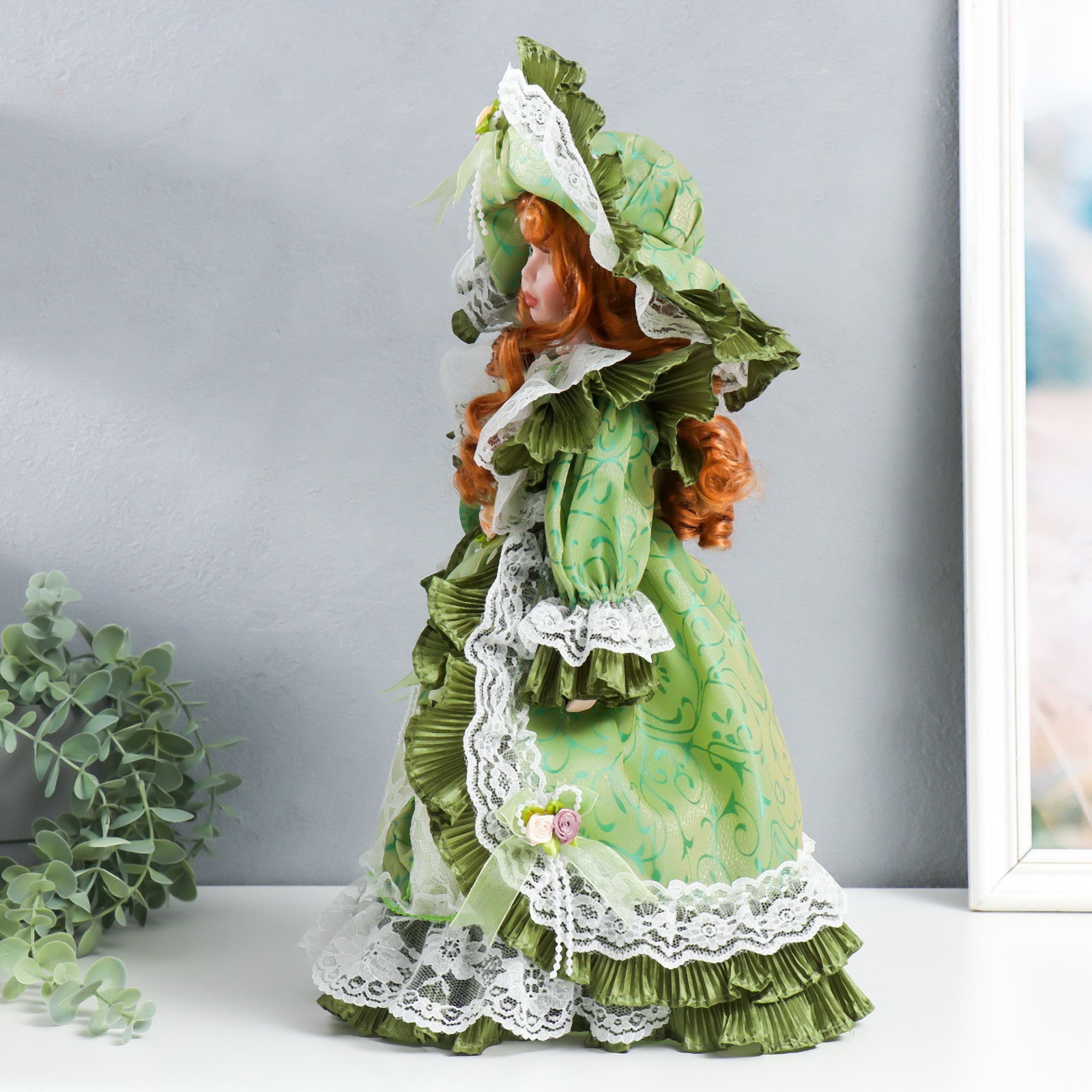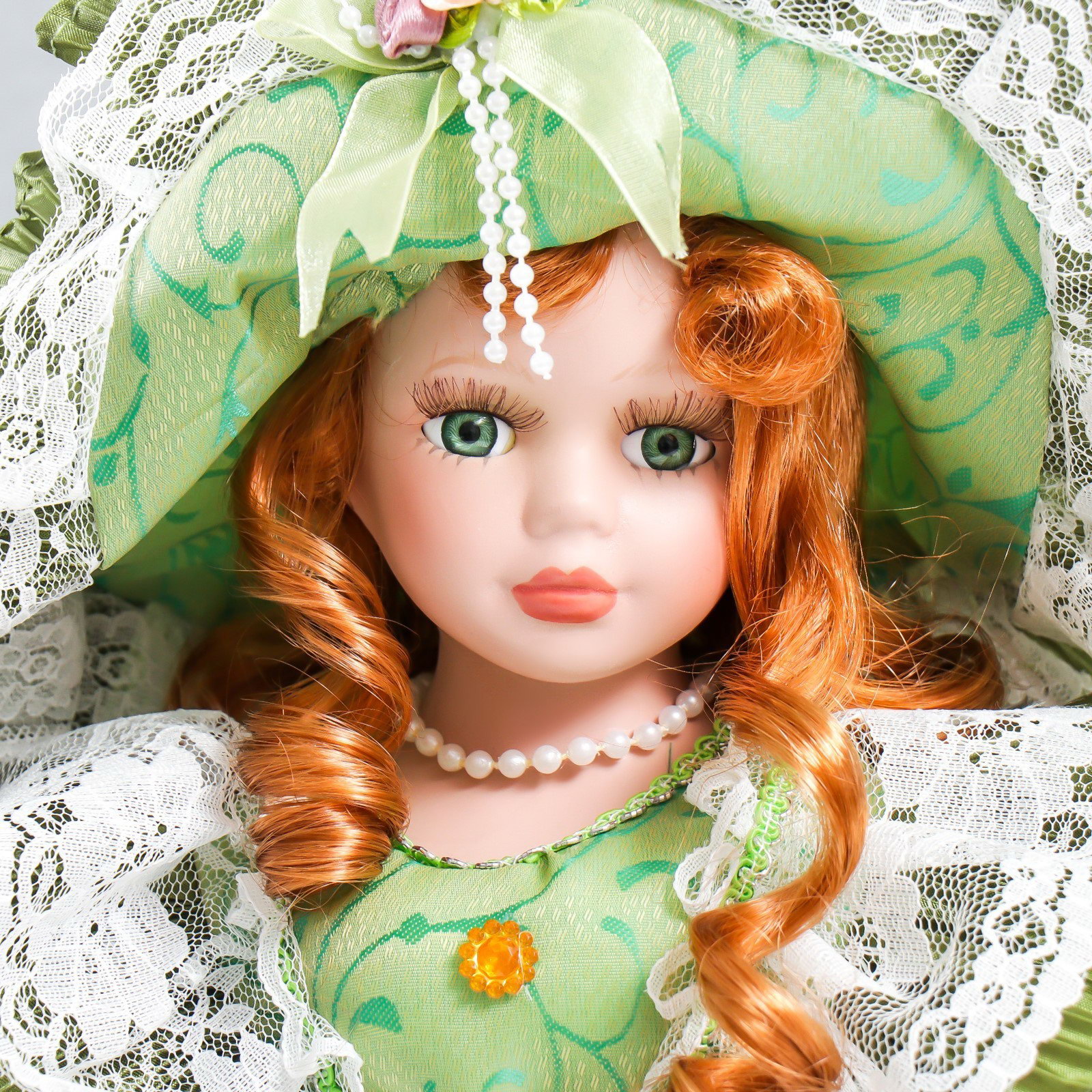 Кукла коллекционная керамика "Леди Джулия в оливковом платье с кружевом" 40 см, 40 см., Китай