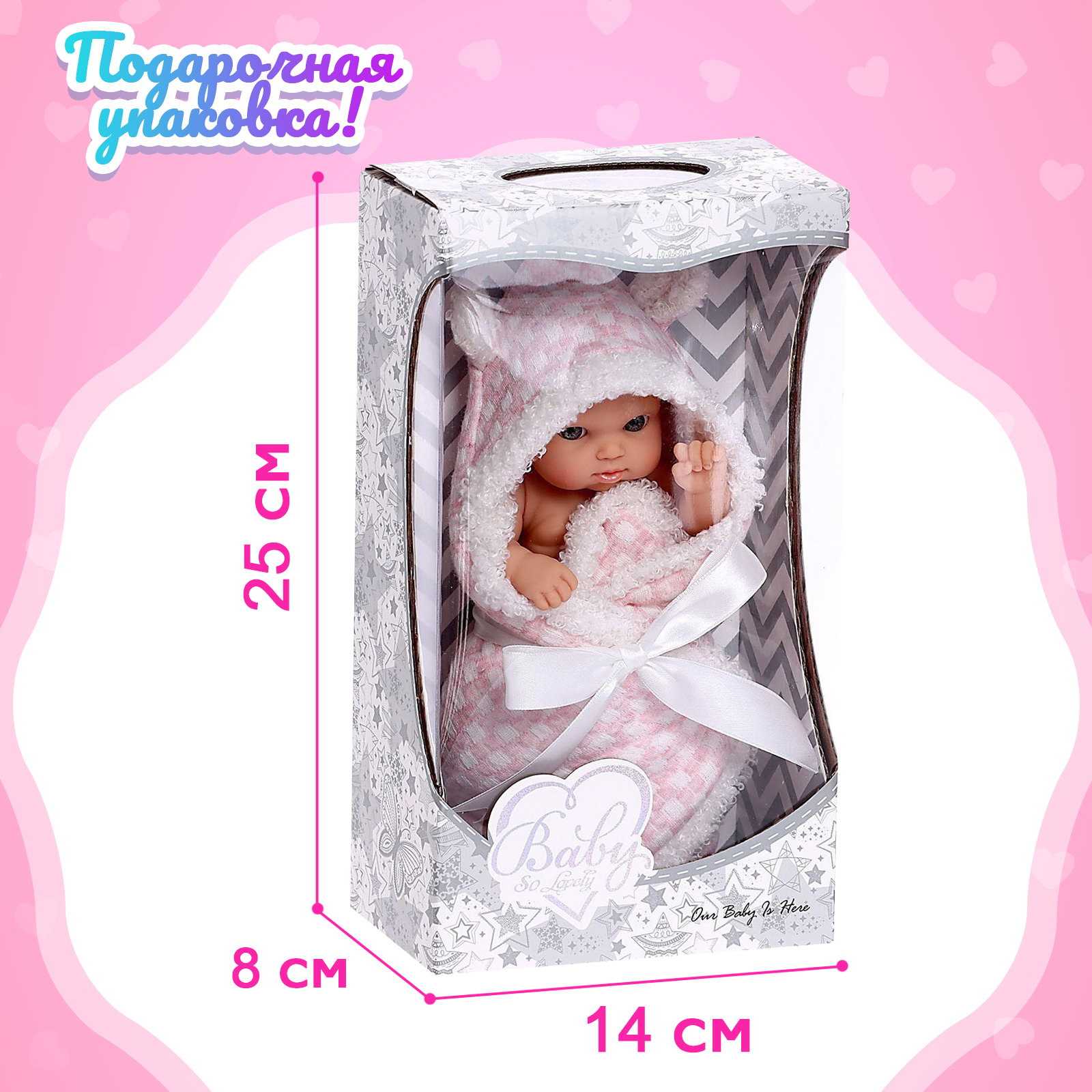 Размер упаковки: 8 x 25 x 14 см. Для кого: Для девочки Для кого: Для девочки tnved: 9503002000 Особенности куклы: Без особенностей Возраст: От 1.5 лет Вид упаковки: Коробка картонная с PVC Высота, см: 25.5 Вид: Пупс Комплектация: С аксессуарами Пупс одна из самых любимых детских игрушек. Благодаря ей малыши могут освоить социальные роли, научиться заботиться о ком-либо, проявить ответственность. Особенности пупса
