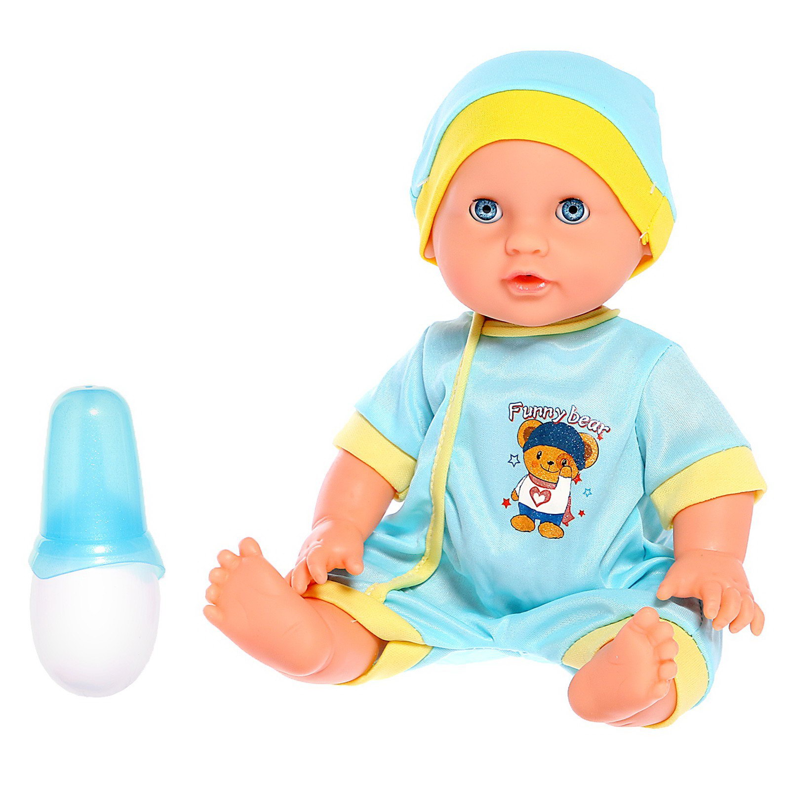 Пупс функциональный "Саша", с бутылочкой, пьёт, писает, цвет голубой, 8x17x31 см., Китай