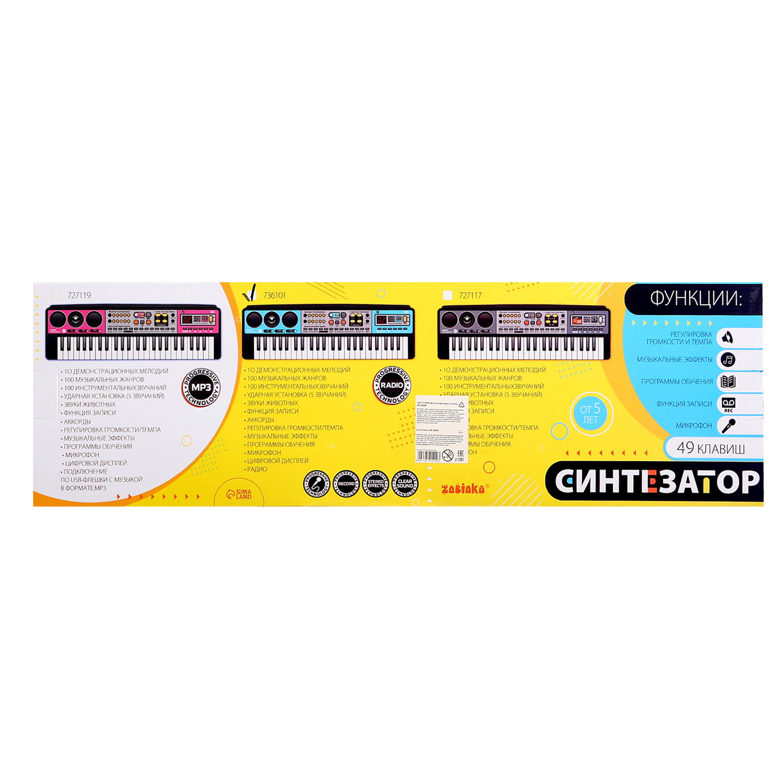 Синтезатор детский с микрофоном "Музыкальный взрыв", 49 клавиш с радио, работает от батареек, 55.5x17x6 см., ZABIAKA, Китай