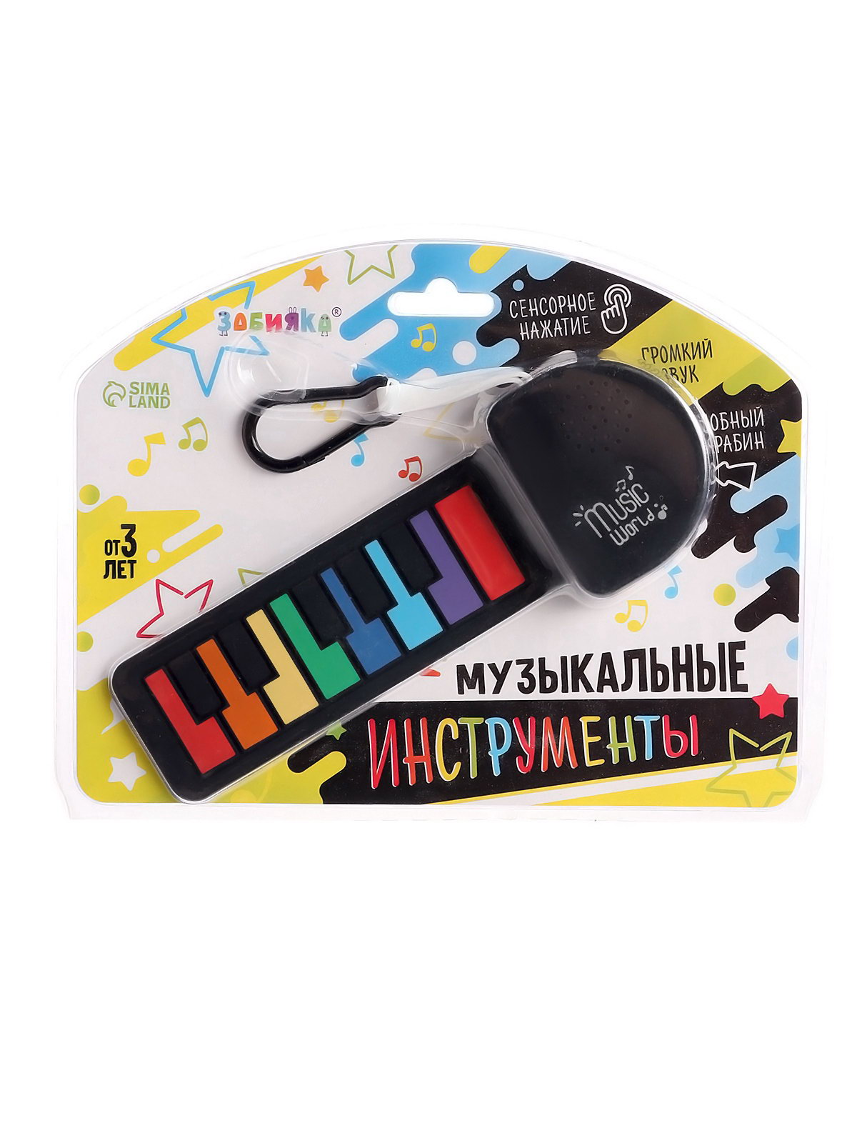 Музыкальное пианино, с сенсорным нажатием и карабином, детское, 1.3x18x6.5 см., ZABIAKA, Китай