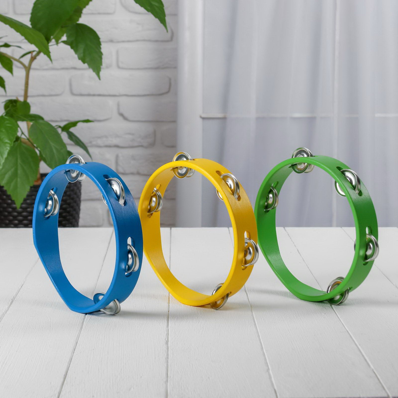 Игрушка музыкальная "Бубен" простой средний МИКС, 3.5x17x17 см., Лесная мастерская, Китай