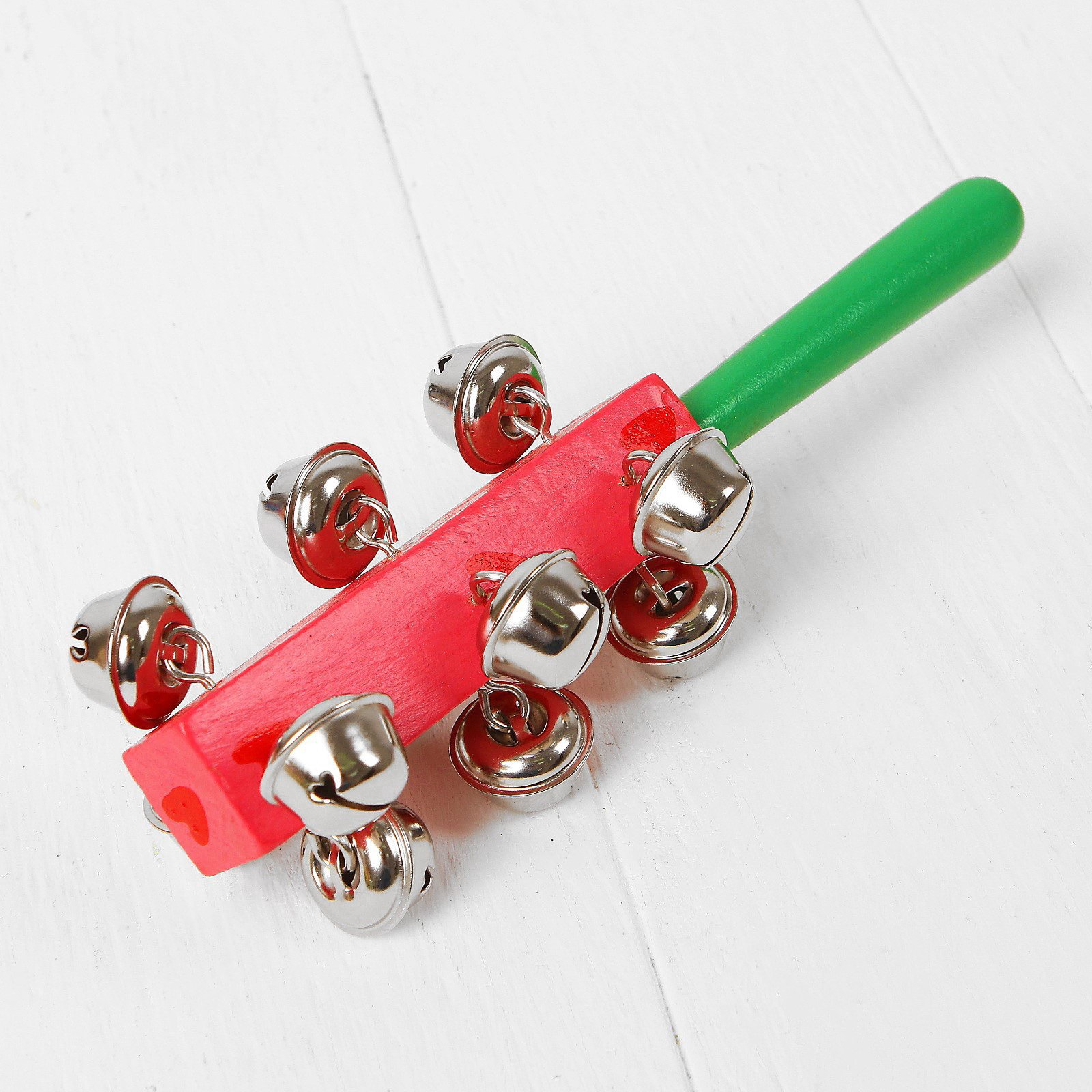 Погремушка музыкальная игрушка, с колокольчиками и ручкой, МИКС, 2.5x18x2.5 см., Лесная мастерская, Китай
