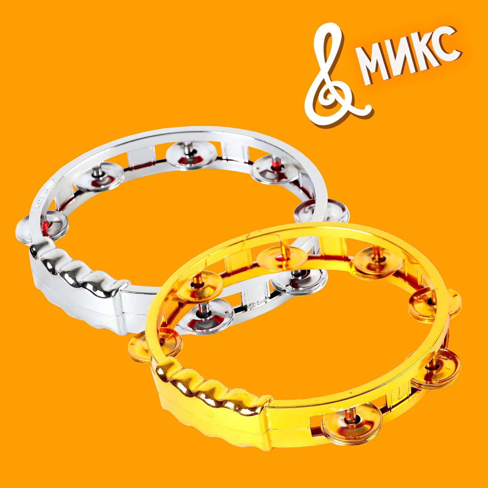 Музыкальная игрушка бубен "Звонкий блеск", с металлическими бубенцами, цвета МИКС, 15x15x4 см., Китай