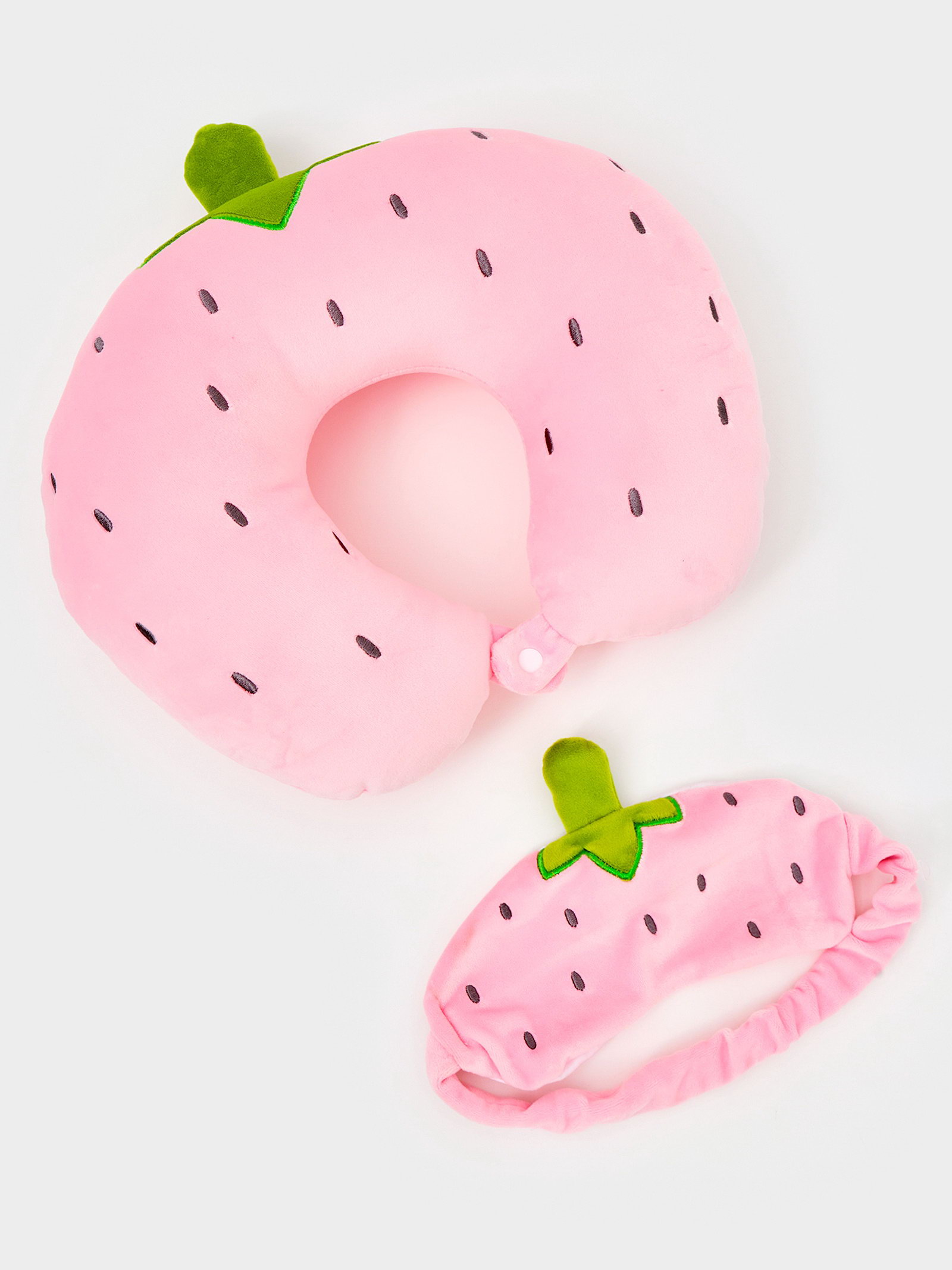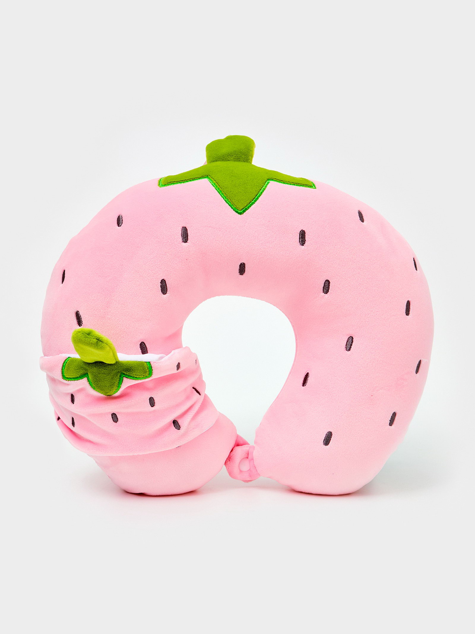 Мягкая игрушка - антистресс подголовник "Клубничка" с маской для сна, 35x7x28 см., Китай