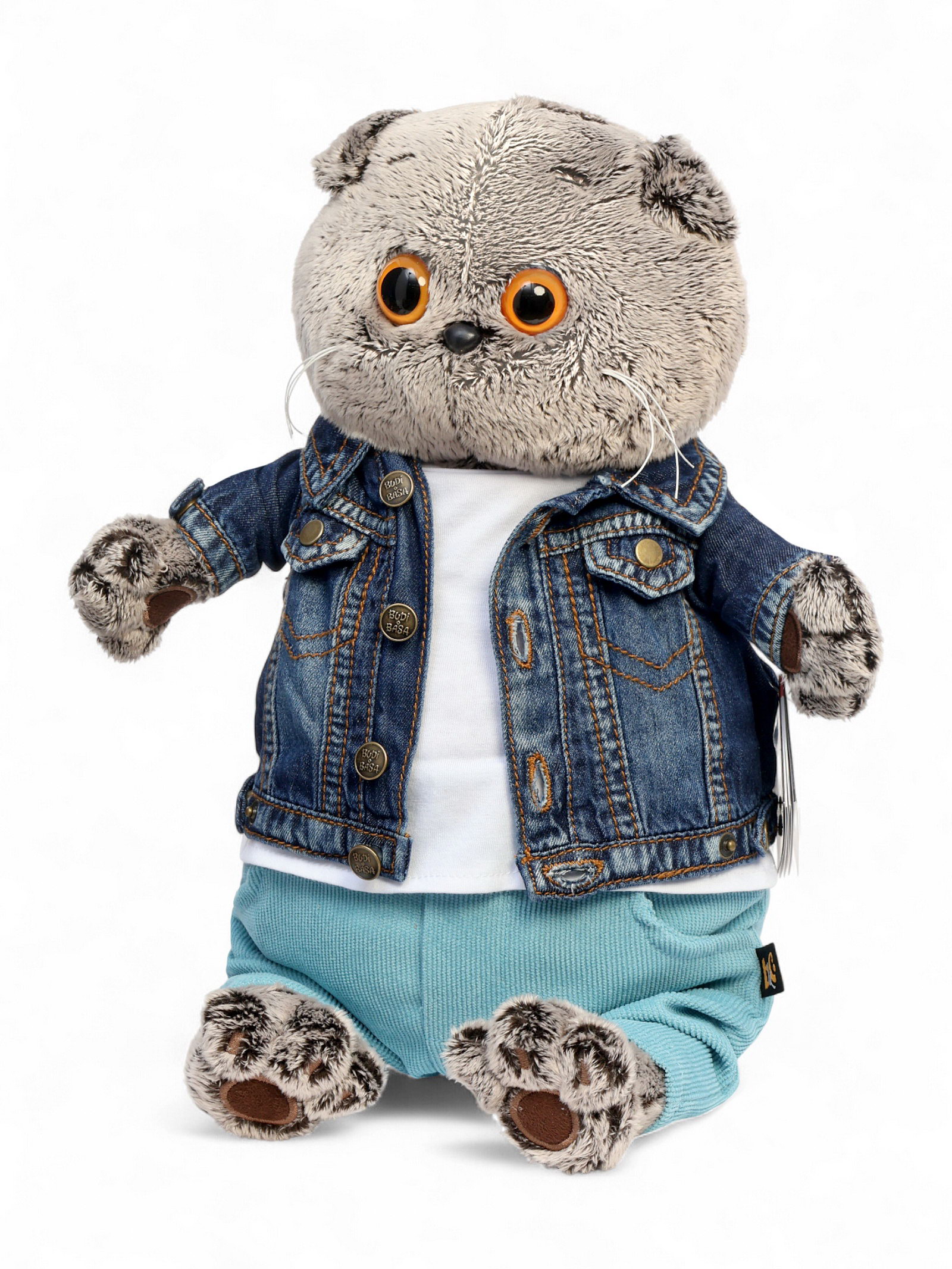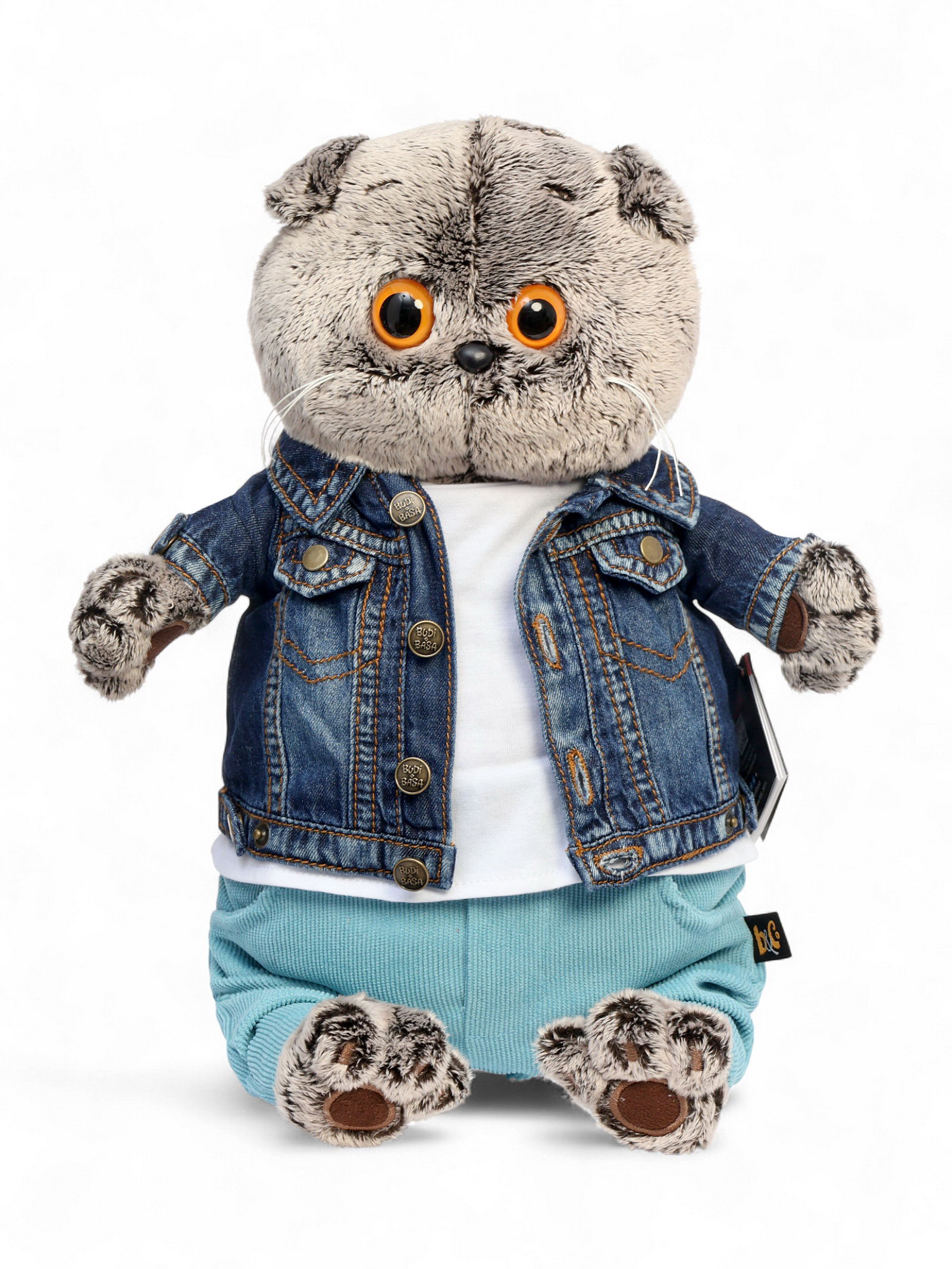 Мягкая игрушка "Кот Басик в джинсовой куртке и бирюзовых штанах", 30 см, Басик и Ко, Россия