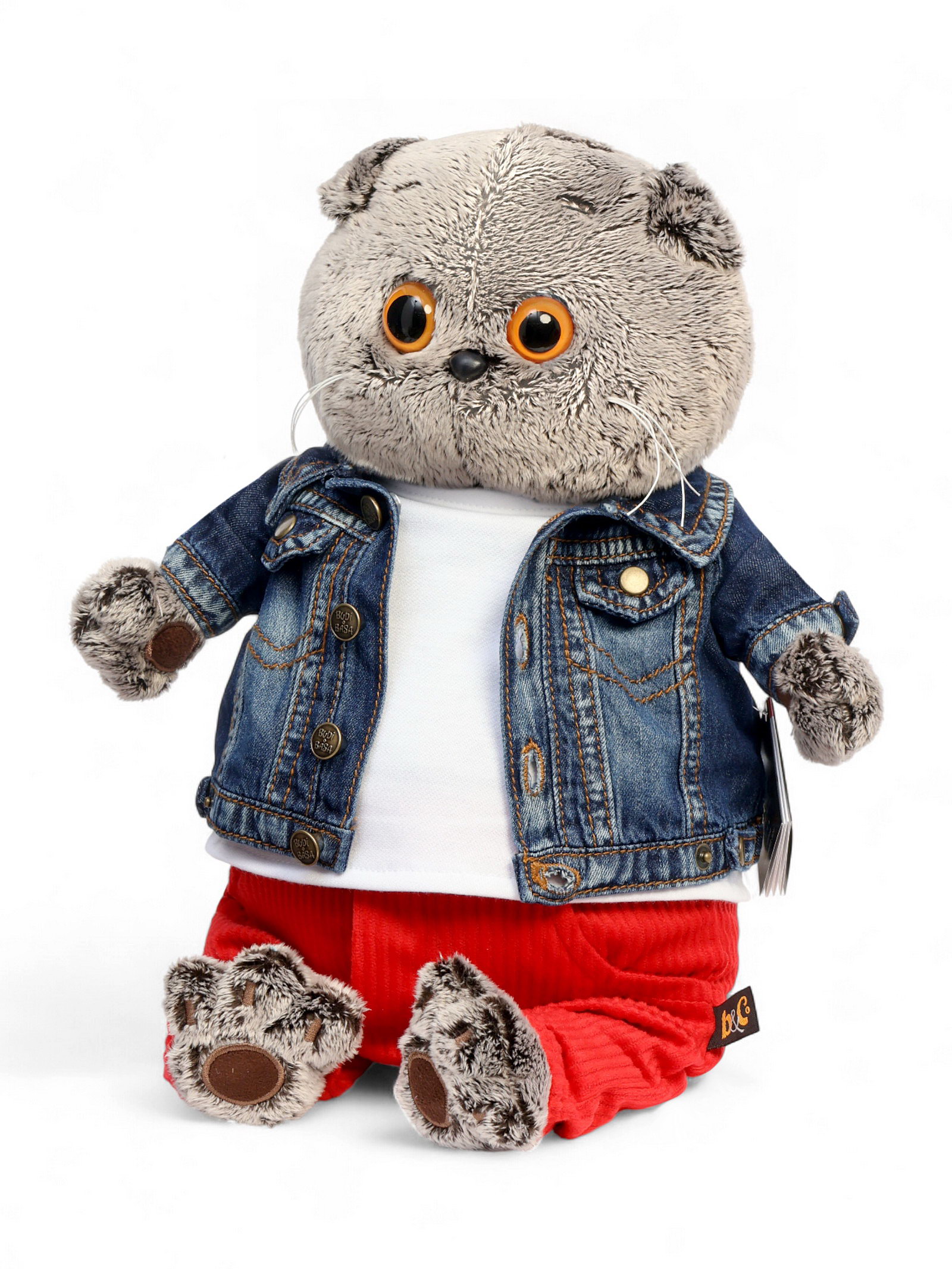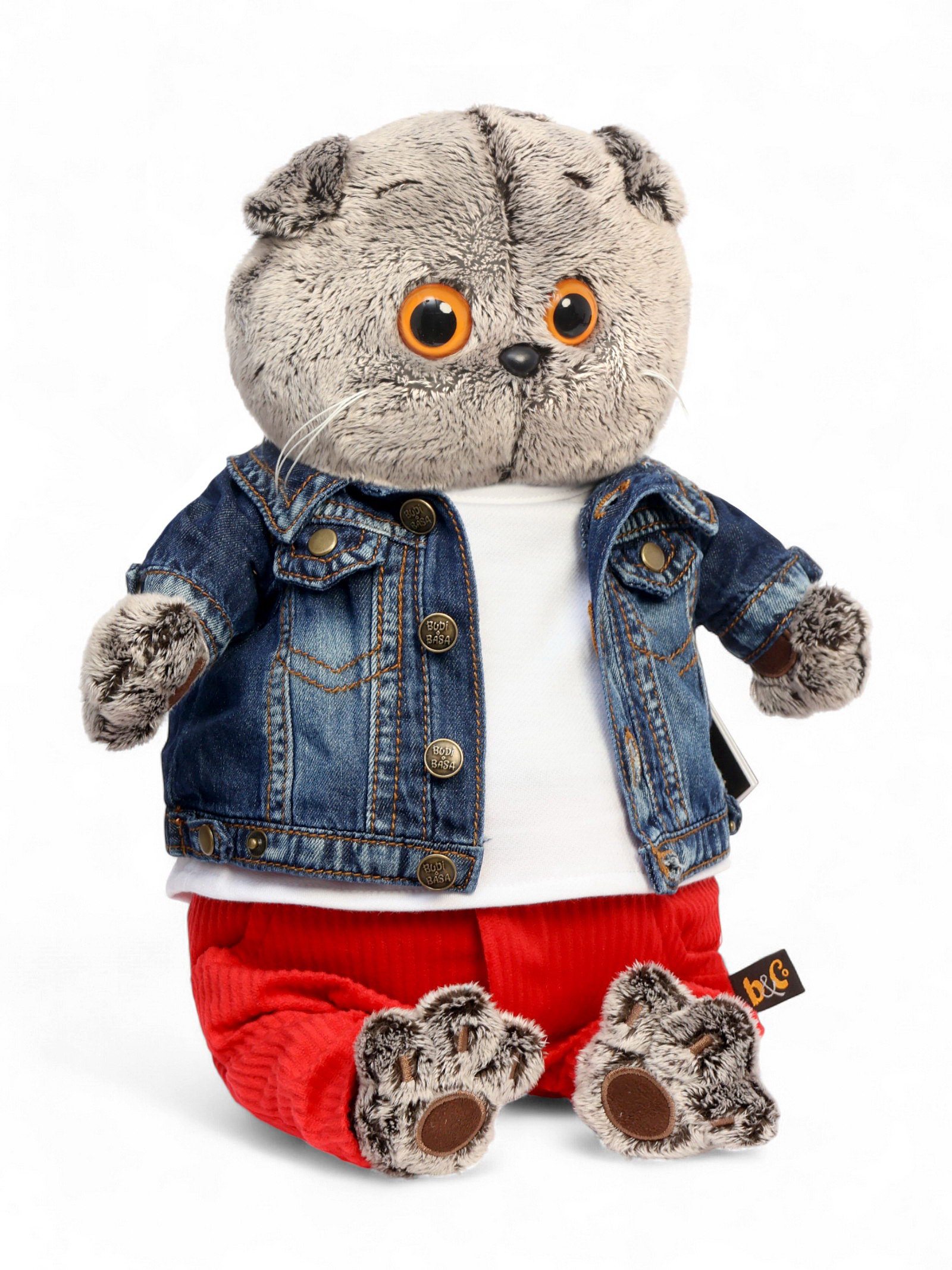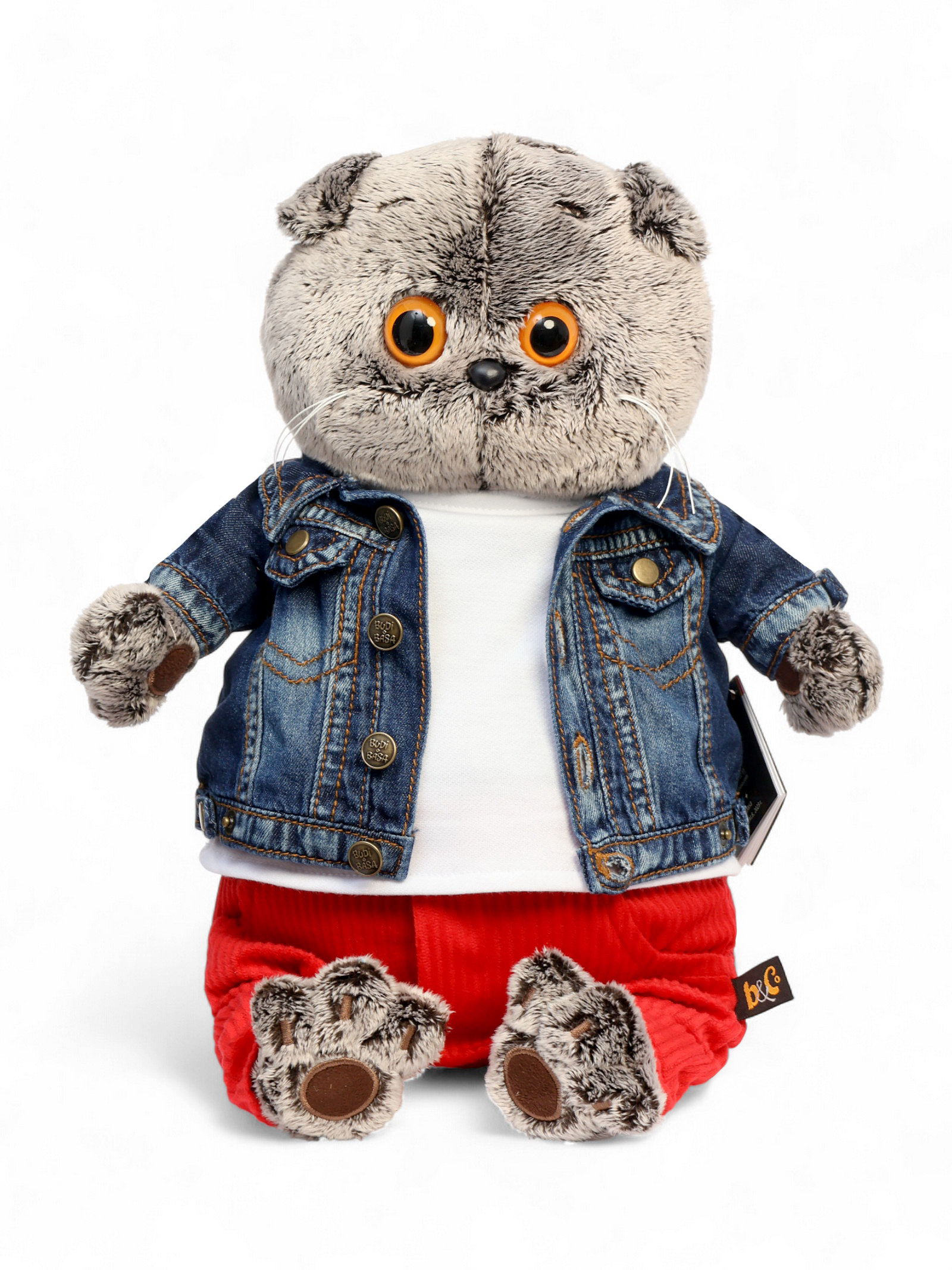 Мягкая игрушка "Басик в джинсовой куртке и малиновых штанах", 30 см, Басик и Ко, Россия