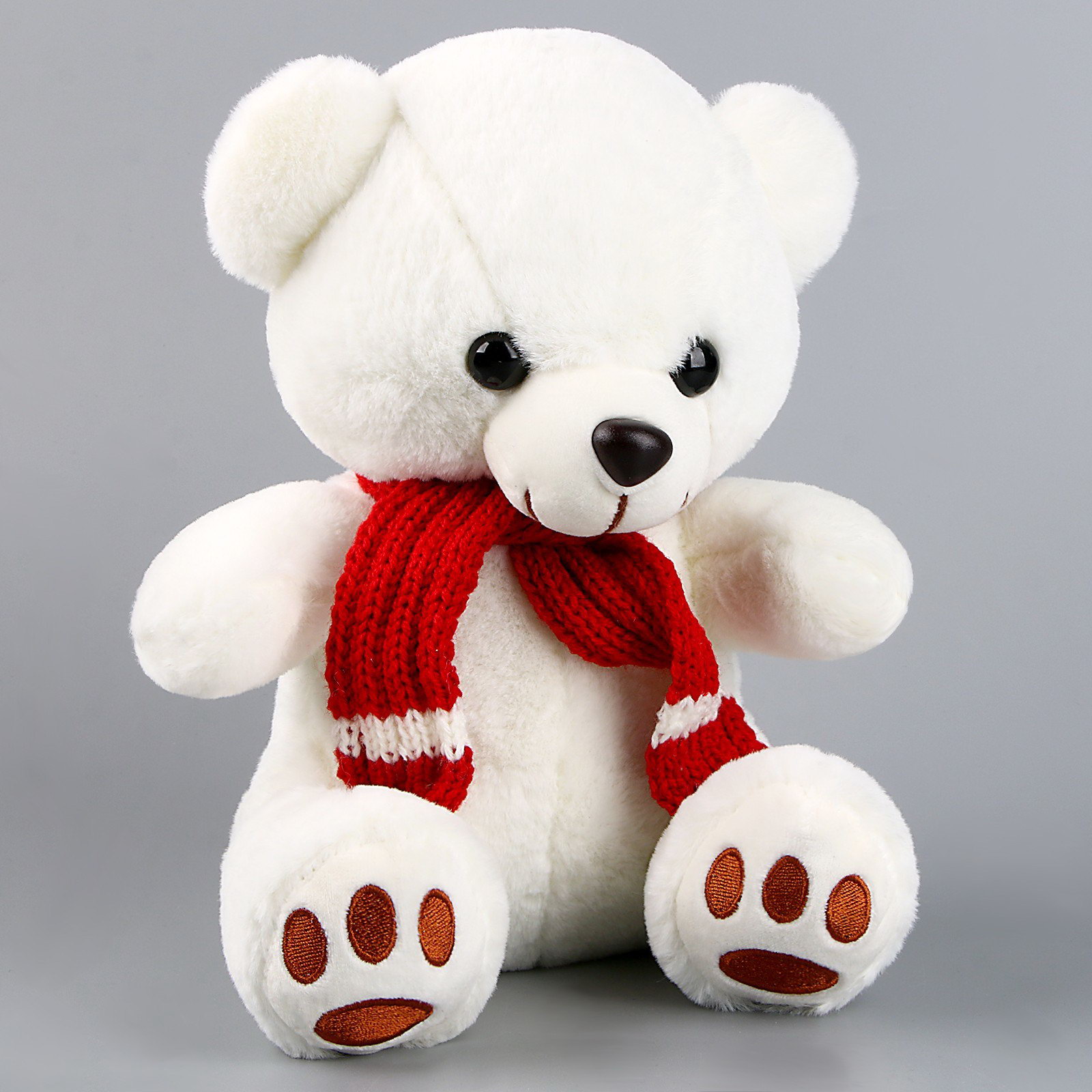 Мягкая игрушка "Мишка в шарфе", 24 см, цвет белый, 17x23x16 см., Китай