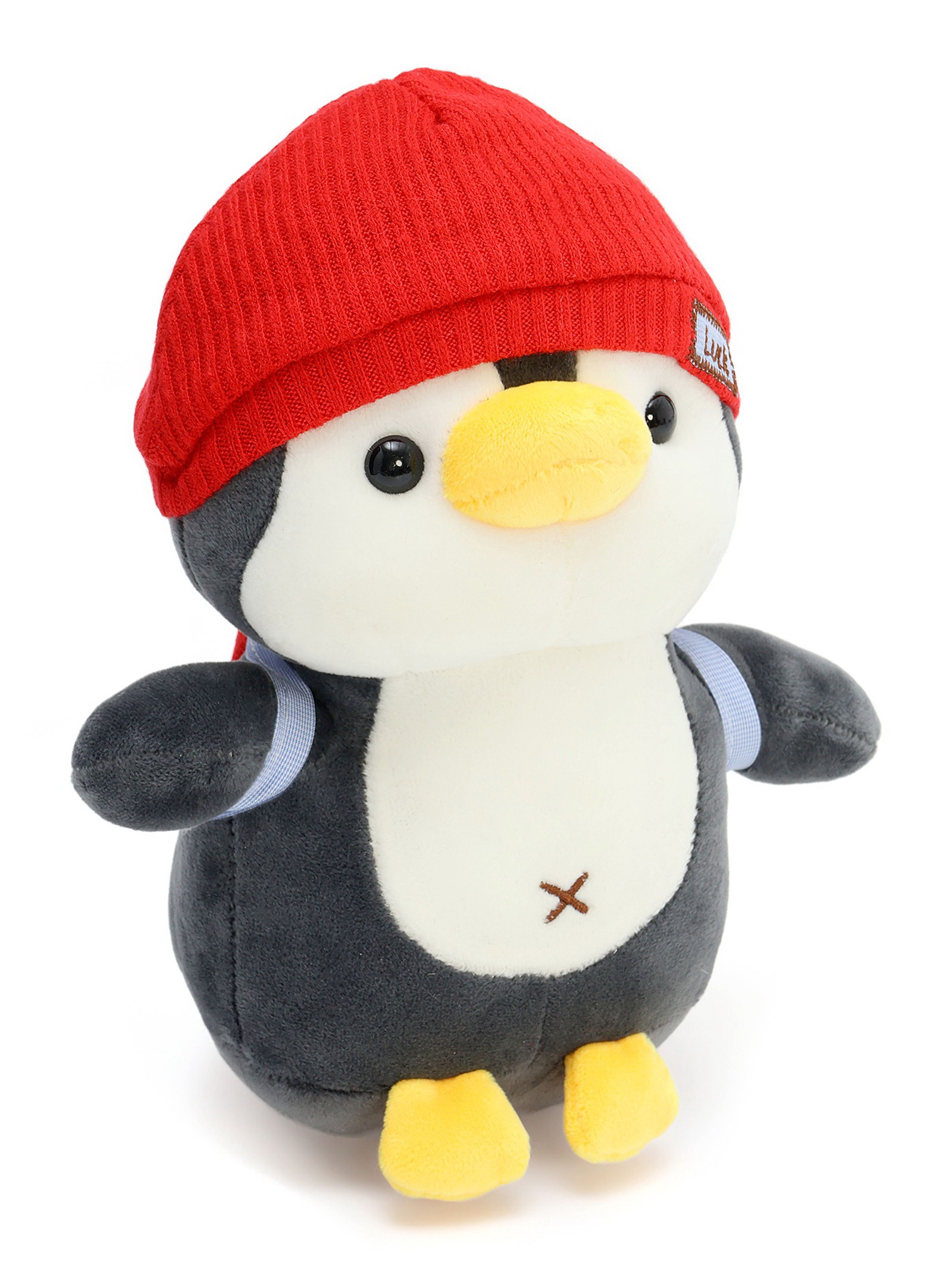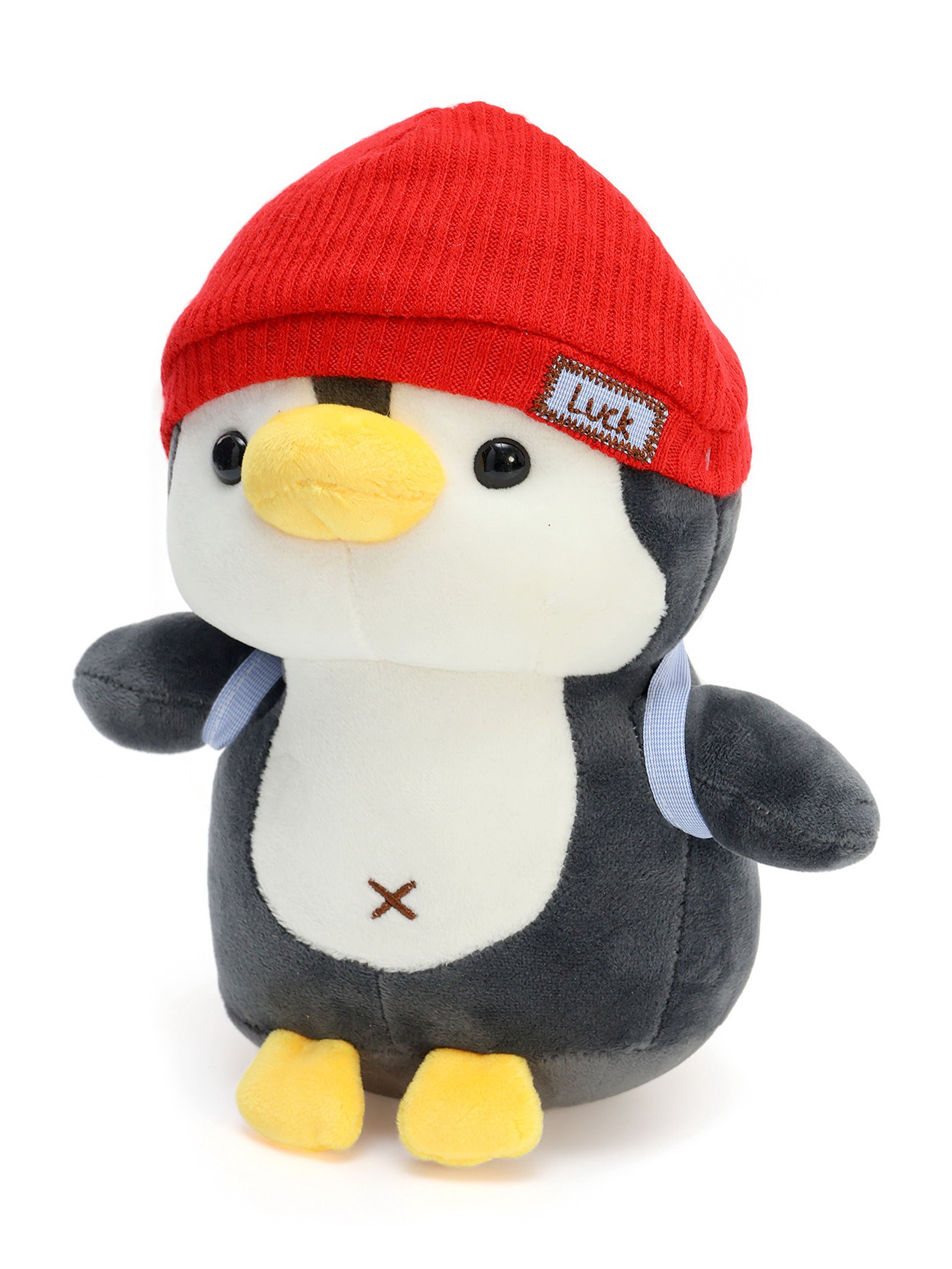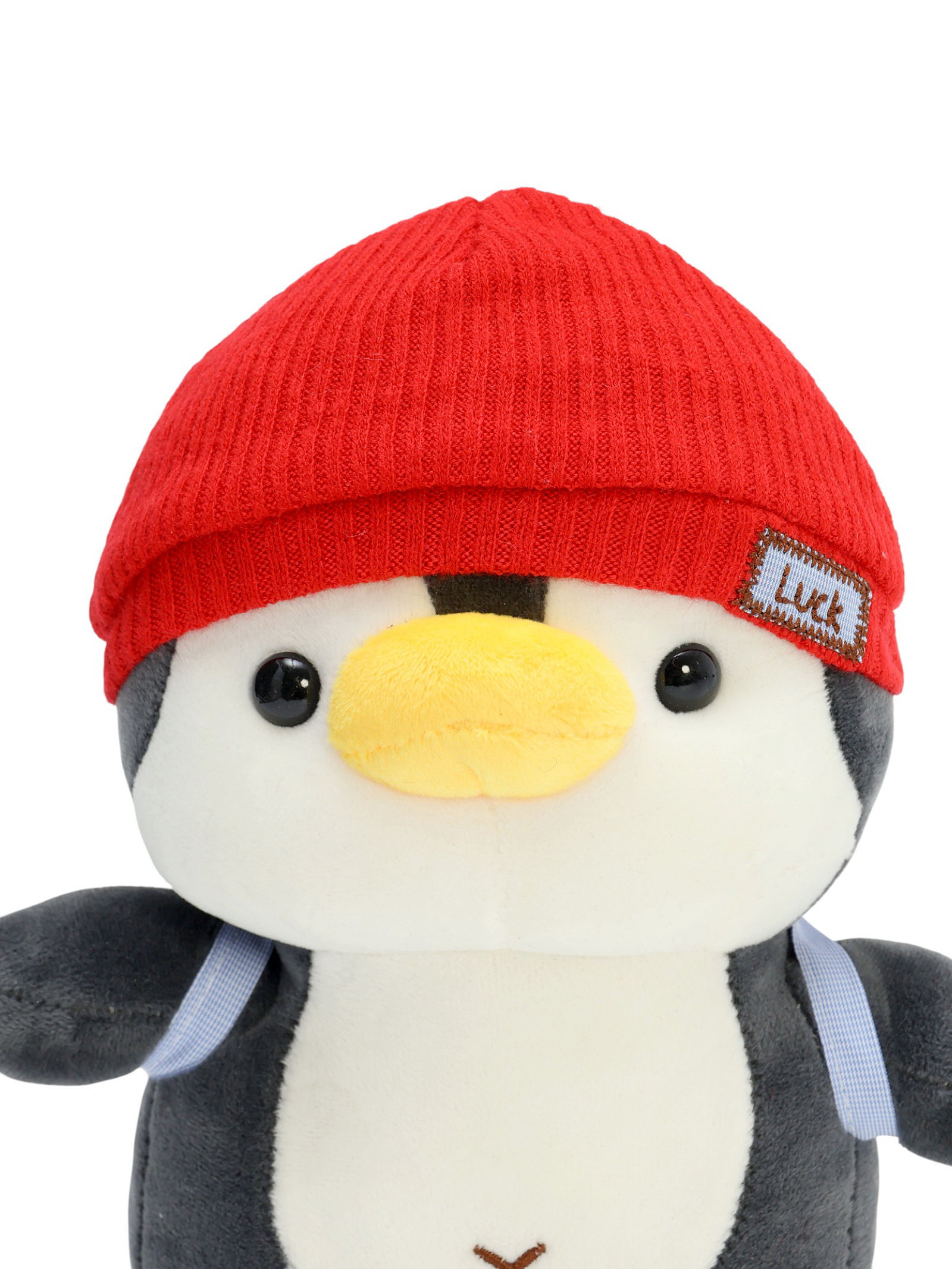 Мягкая игрушка "Пингвин" с рюкзаком, в красной шапке, 22 см, 16x22x12 см., Китай