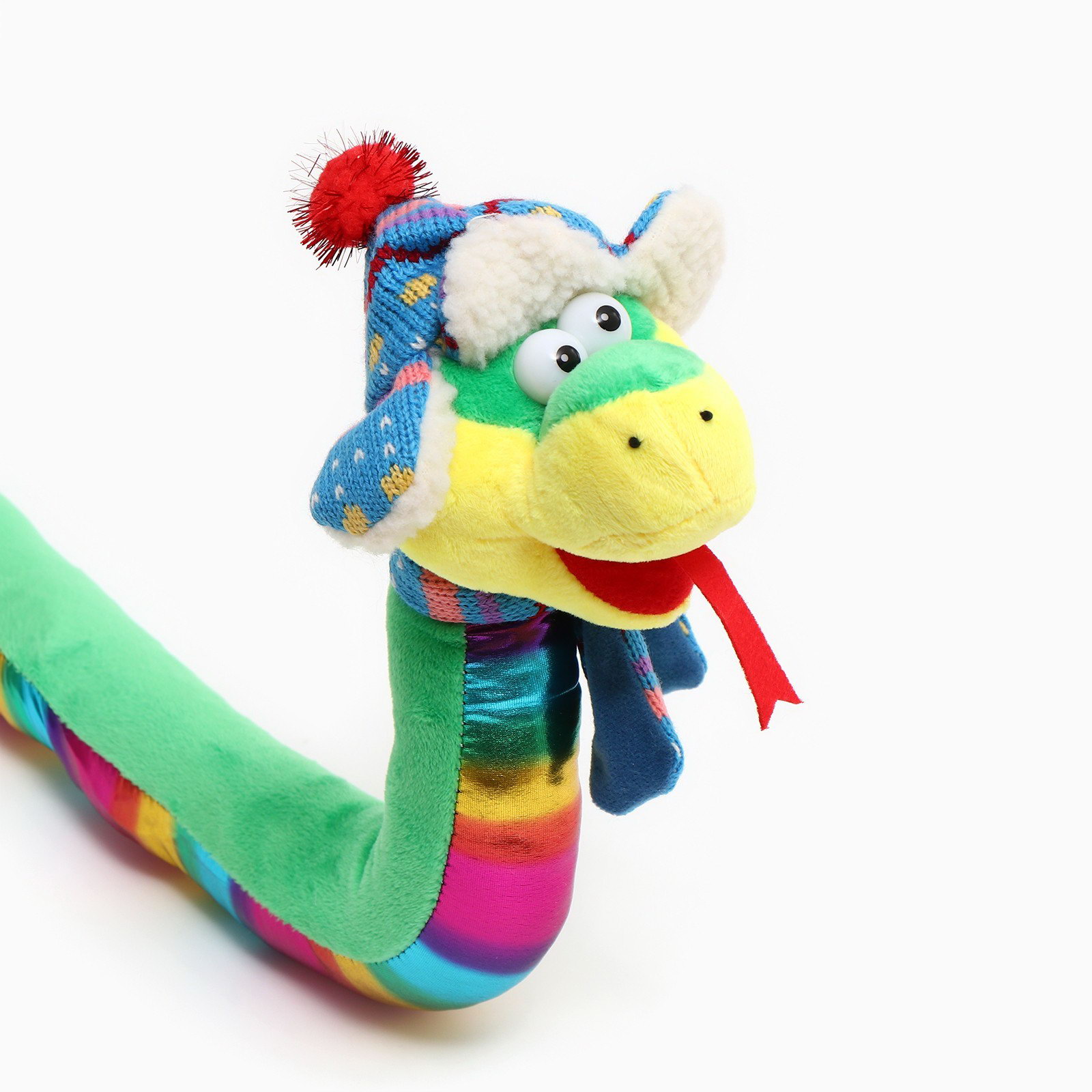 Мягкая игрушка "Змея", 95 см, с разноцветным животиком, в новогоднем колпаке, Китай