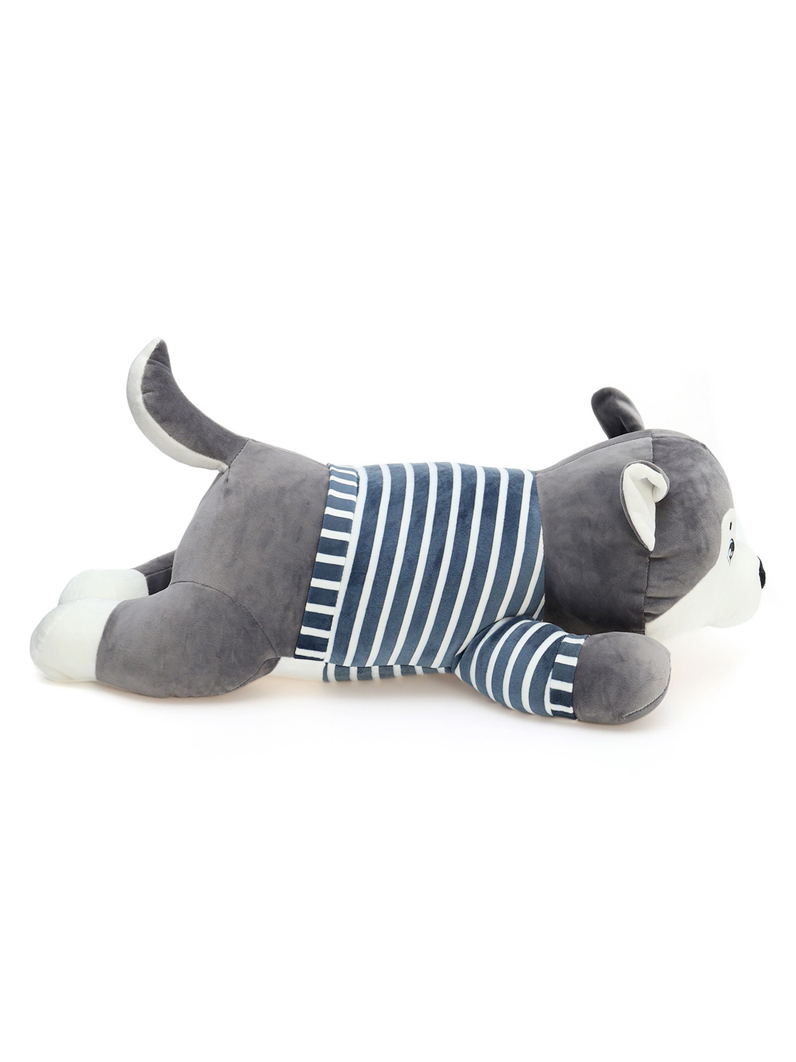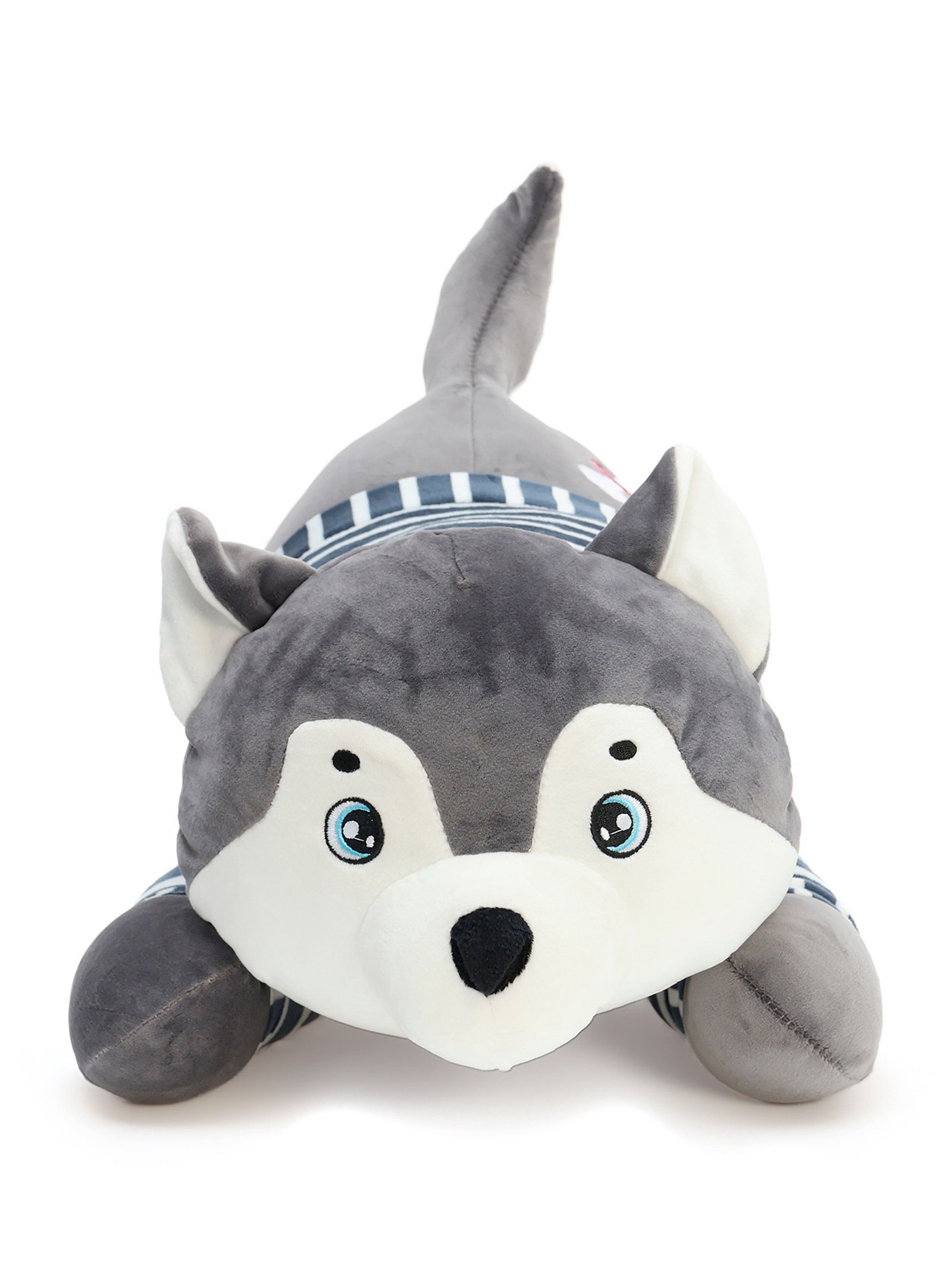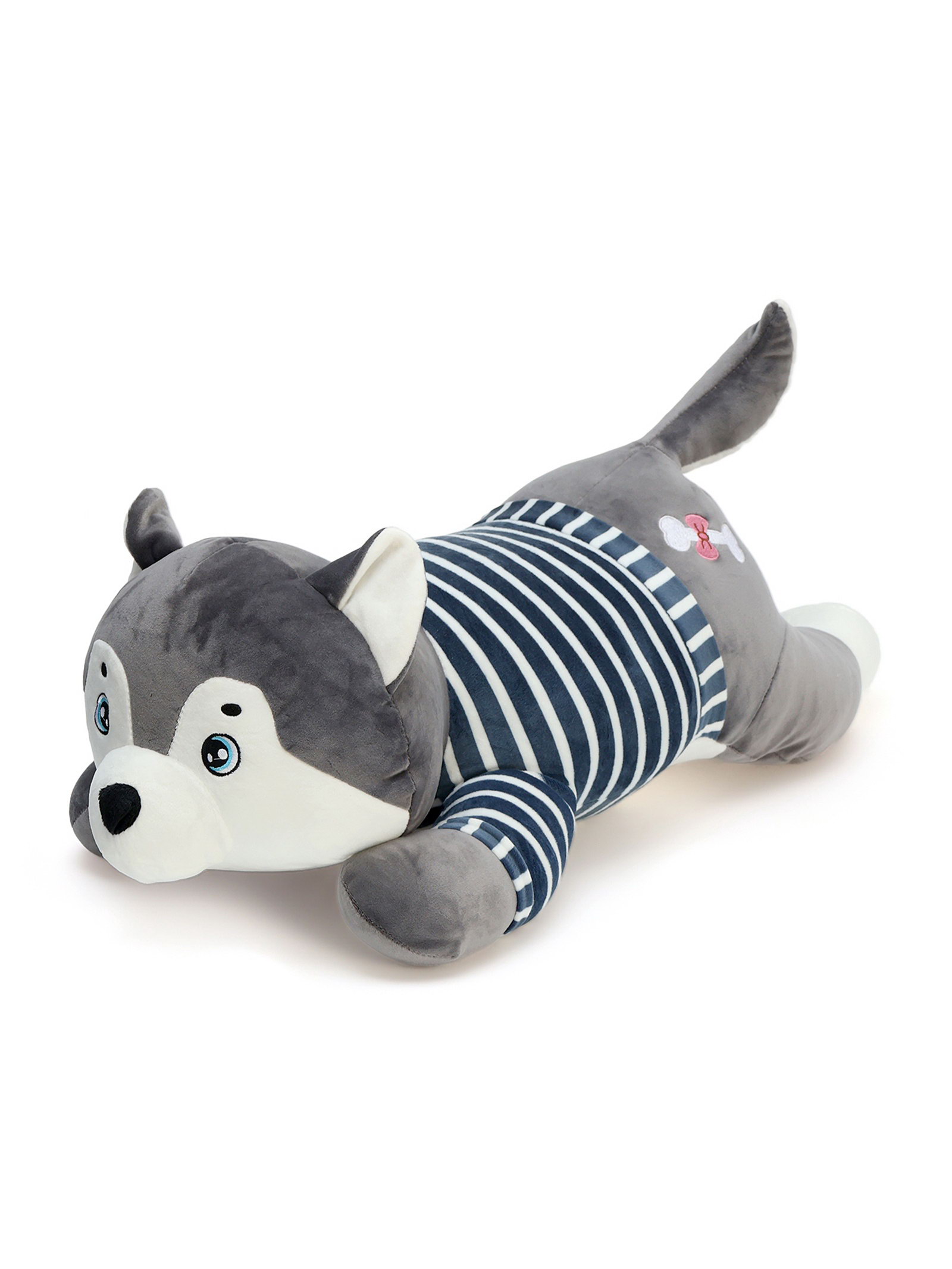 Мягкая игрушка "Хаски", с пледом, 60 см, цвет серый, 32x64x24 см., Россия