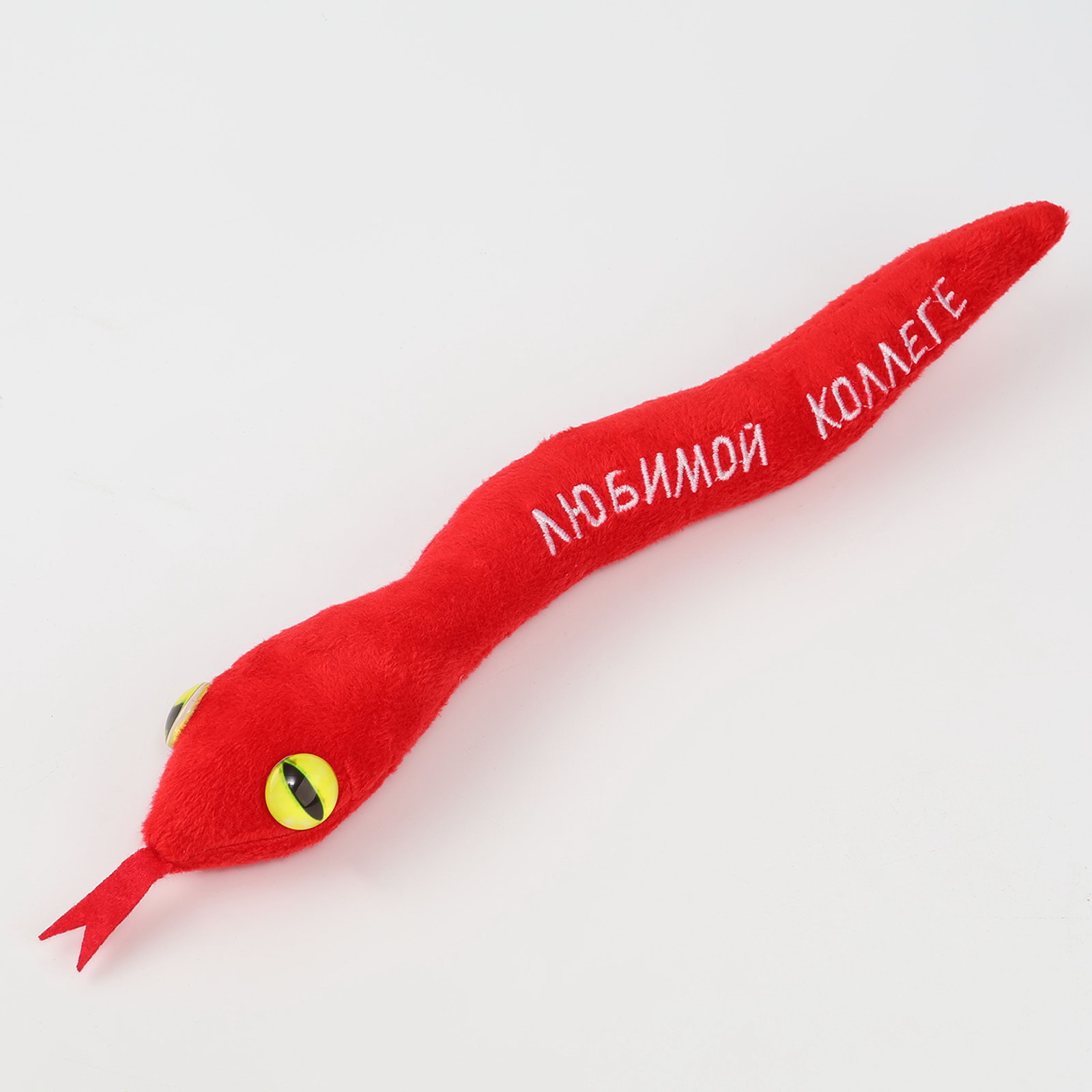 Добавьте тепла и позитива Эта красная змея с надписью "Любимой коллеге" не просто игрушка, а источник радости и творчества. Она помогает создать уютную атмосферу в офисе или дома, добавляя нотку юмора и дружелюбия. Мягкая текстура и удобный размер делают её идеальной для объятий и игр в любых условиях. Игрушка может стать символическим подарком или стильным акцентом в интерьере, особенно для тематических праздников или рабочего пространства. Как ухаживать за мягкой игрушкой