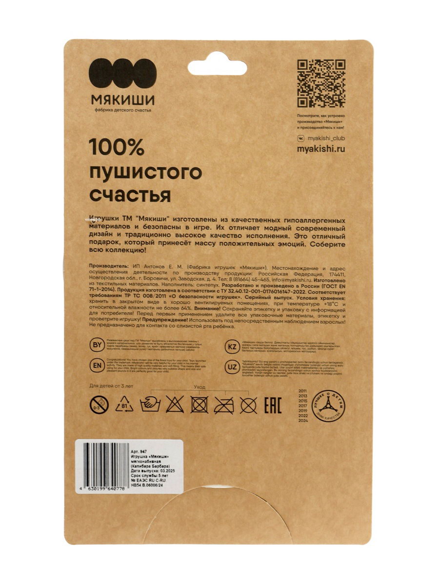 Мягкая игрушка "Капибара Барбара", Пушистики, 15 см, Мякиши, Россия