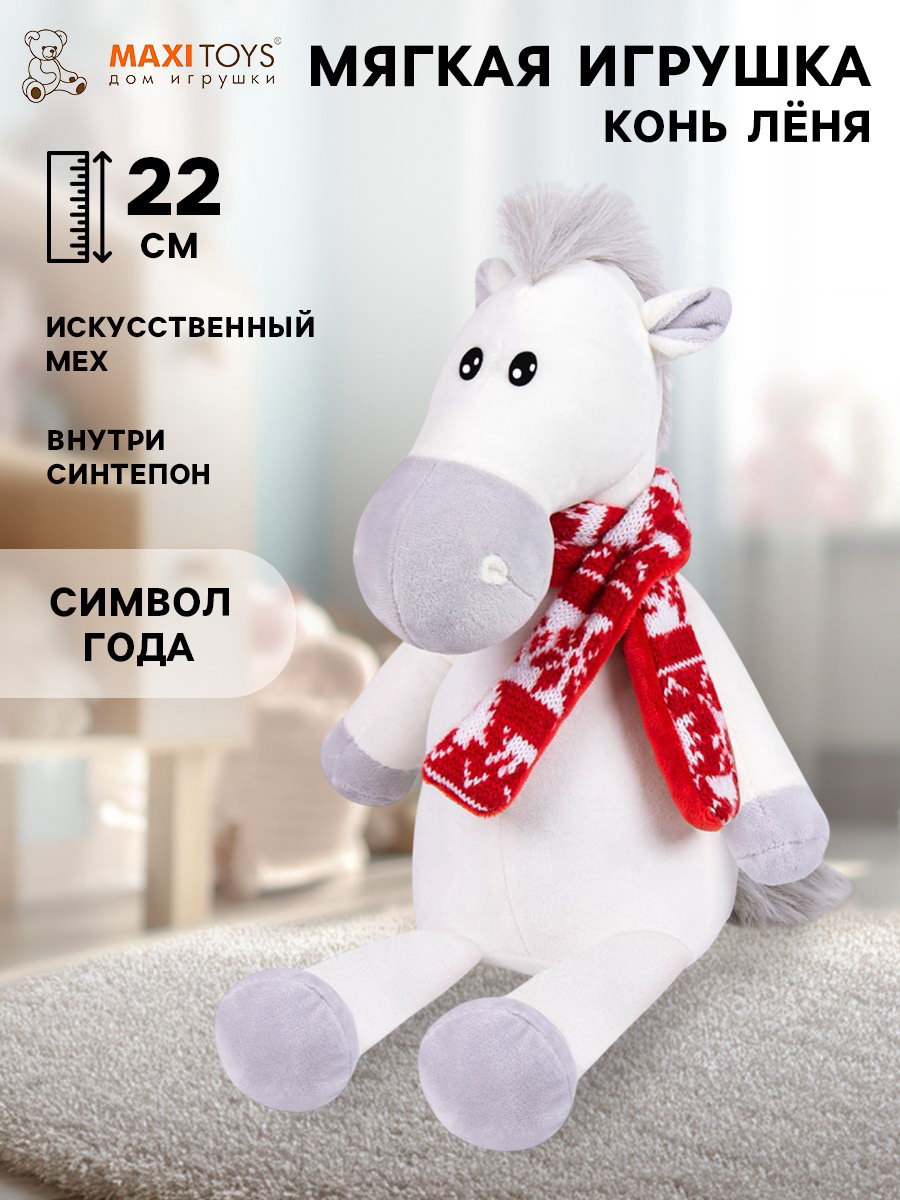 Мягкая игрушка "Конь Лёня", 22 см, MaxiToys, Китай