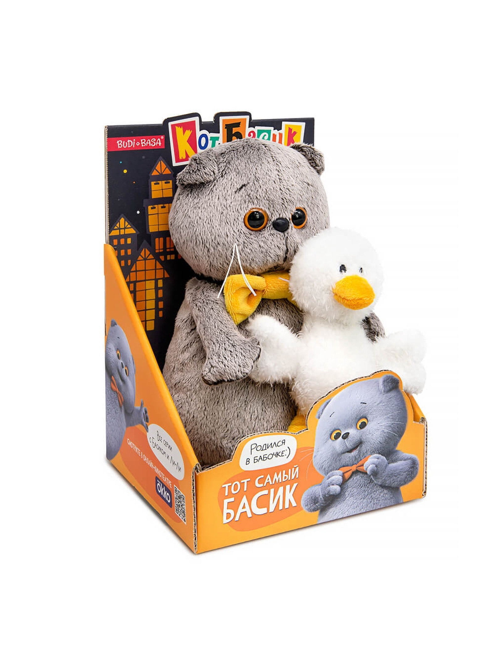 Мягкая игрушка "Кот Басик с Гусиком", 19 см, Басик и Ко, Россия