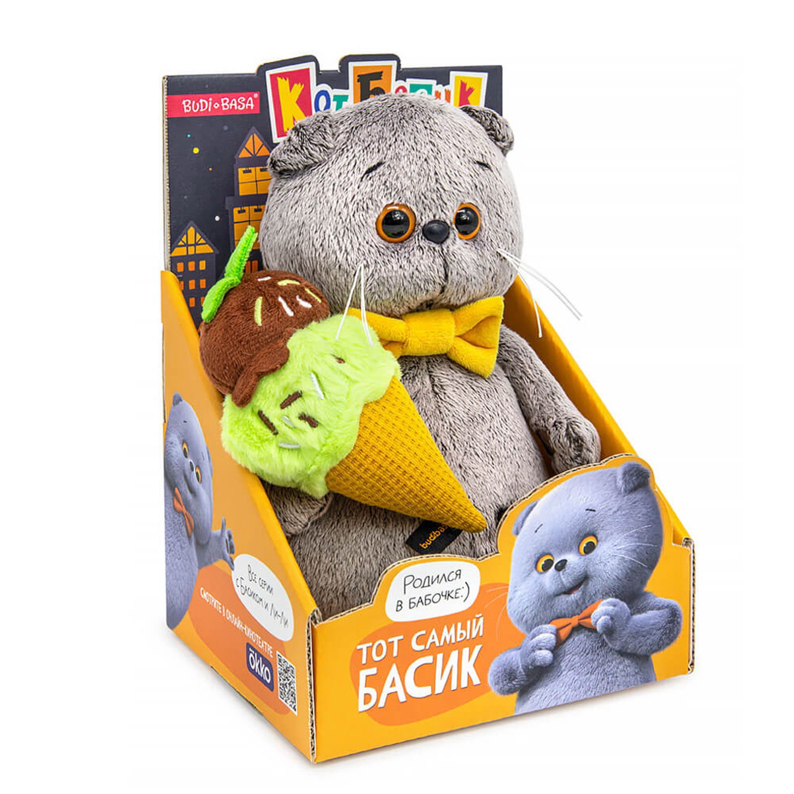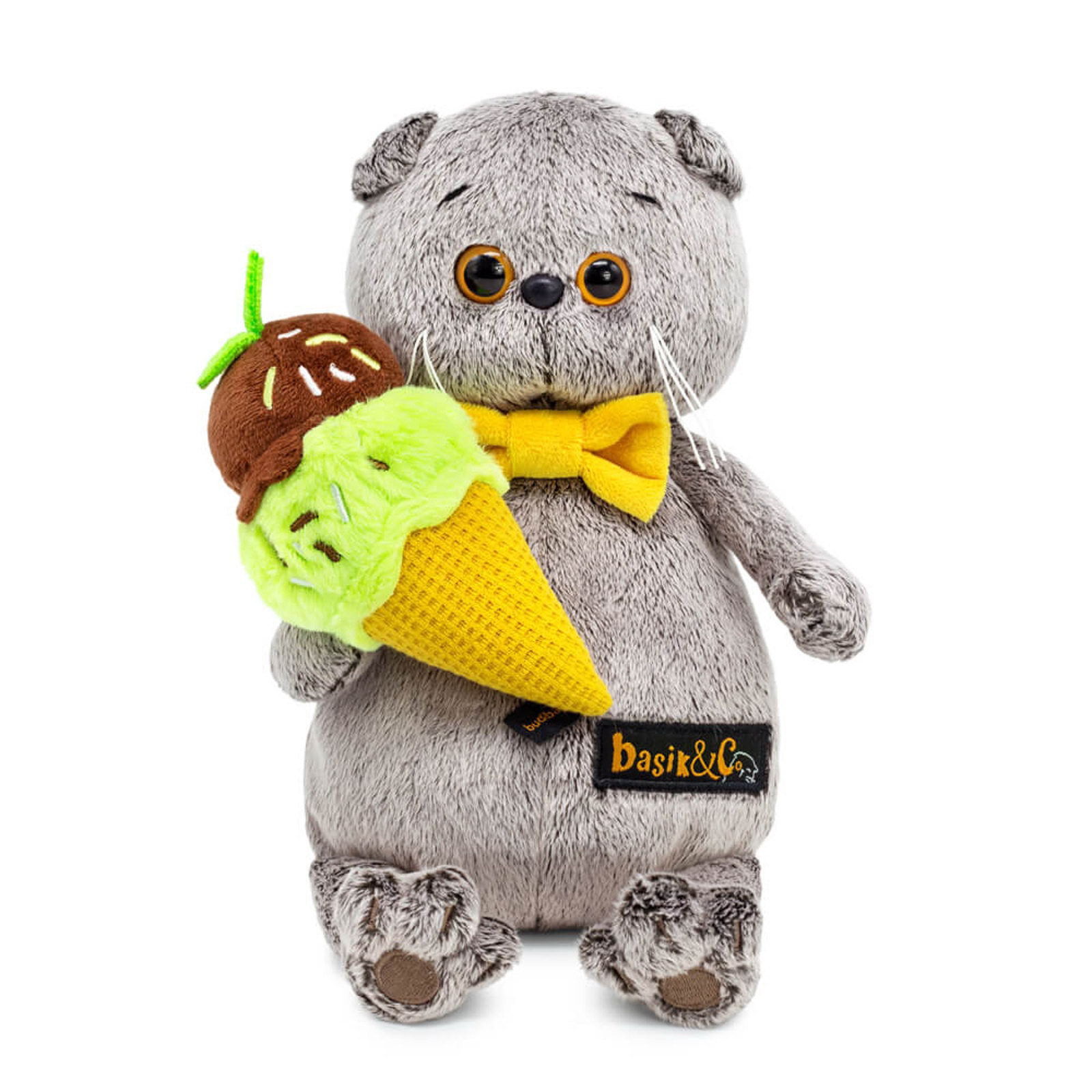 Мягкая игрушка "Кот Басик" с мороженым, 19 см, Басик и Ко, Россия
