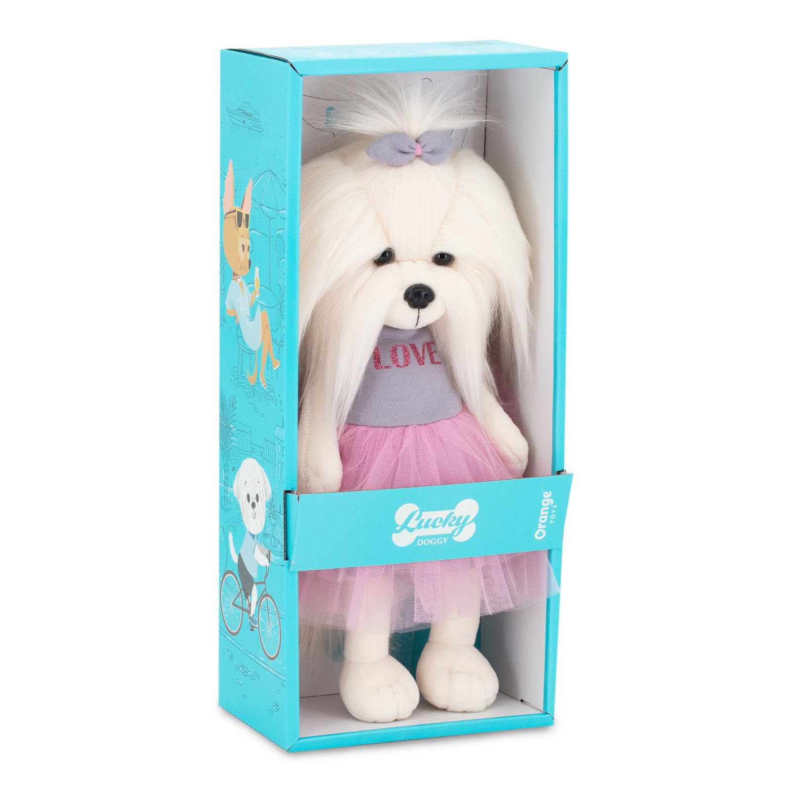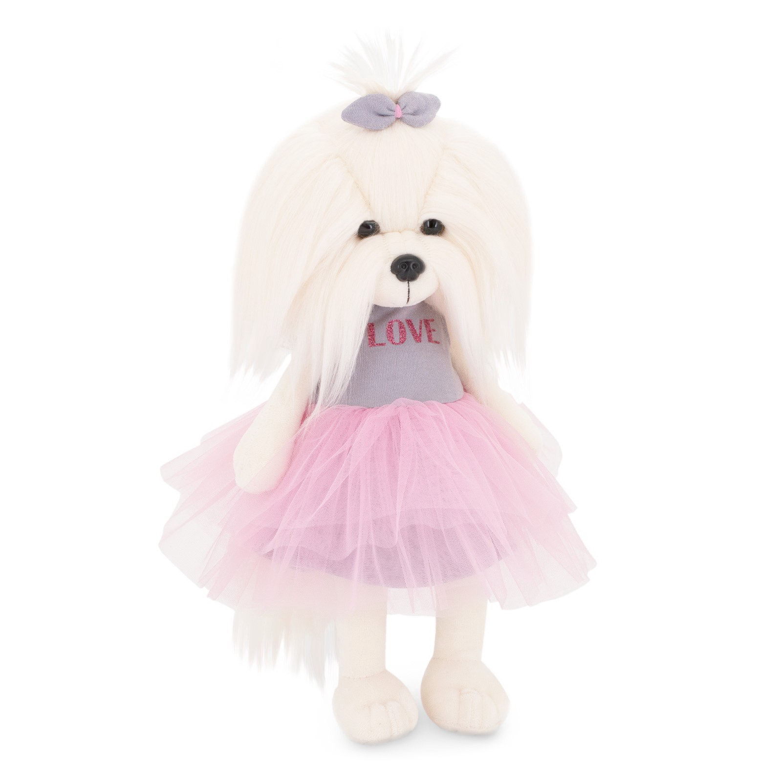 Цвет: Белый, Розовый Размер упаковки: 44 x 13 x 19.5 см. tnved: 9503004000 Температурное ограничение: Нет Особенности: С каркасом Уточняющий вид: Ши-тцу Тематика: Наземные животные Вид: Собака Высота, см: 37 Наполнитель: Синтепон Мягкая игрушка "Стильная собачка в юбке" создана в нежном и романтичном образе. Длинная белоснежная шерсть, аккуратный бантик на голове и пышная розовая юбка из фатина формируют утончённый персонаж, который сразу притягивает взгляд. Надпись LOVE на платье добавляет образу лёгкий модный акцент и делает игрушку особенно выразительной. Собачка выглядит как миниатюрная модница и отлично подходит не только для игры, но и в качестве декоративного элемента в детской комнате. Мягкий материал приятен на ощупь, а продуманные детали подчёркивают аккуратность исполнения. Особенности