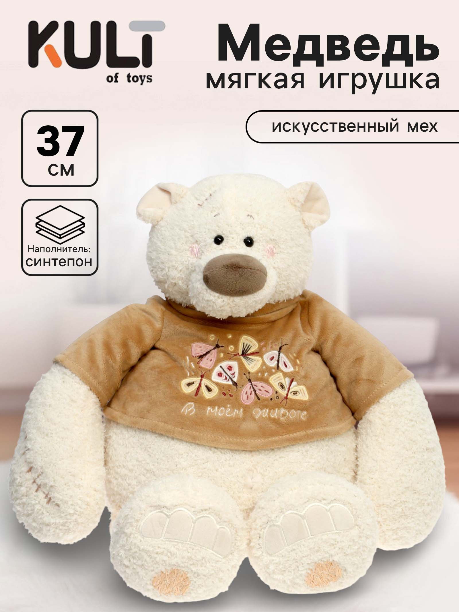 Мягкая игрушка "Медведь Тато в кофейной майке", 37 см, Kult of toys, Беларусь