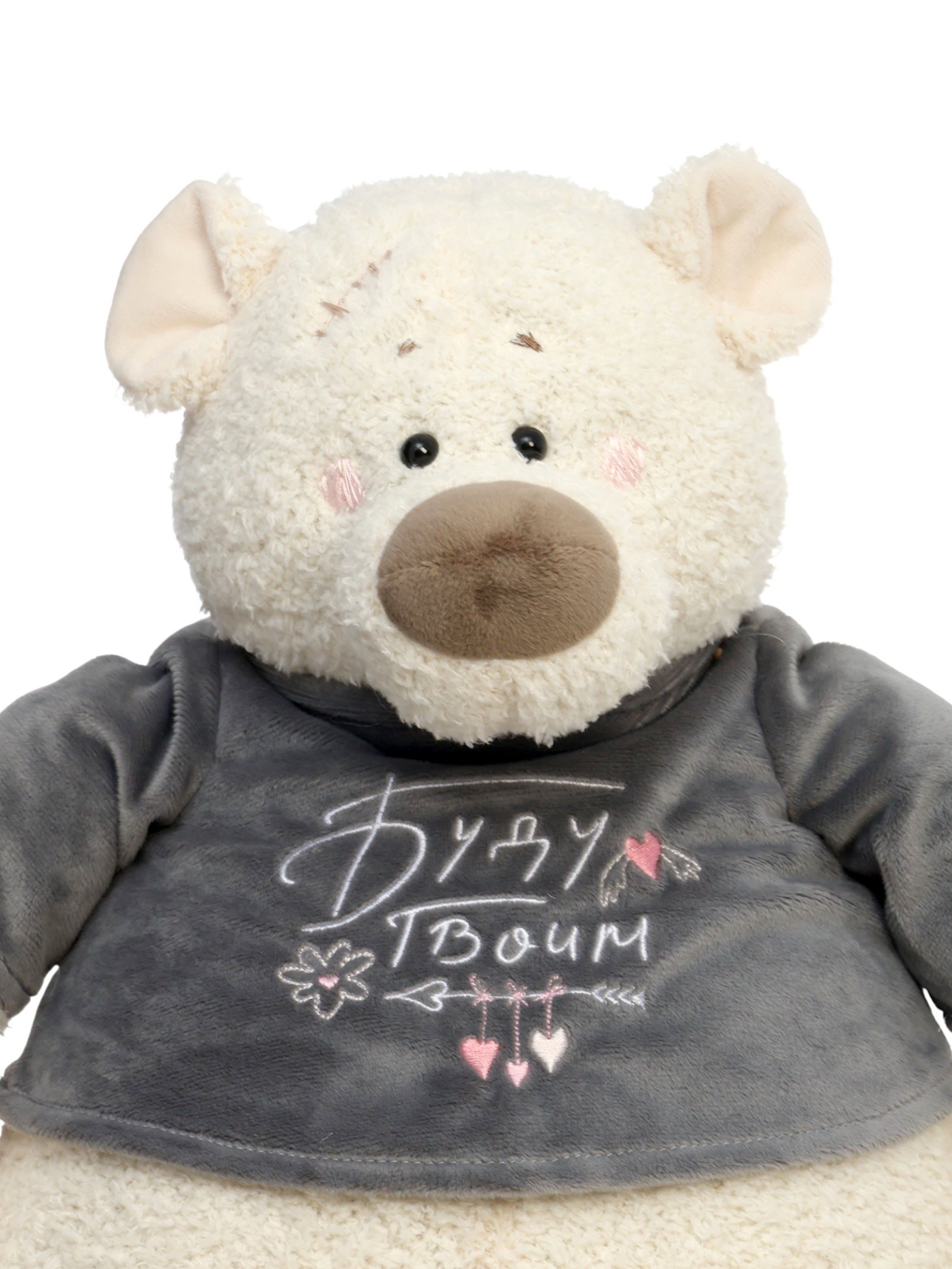 Размер упаковки: 35 x 20 x 50 см. tnved: 9503004000 Температурное ограничение: Нет Наполнитель: Синтепон Особенности: С одеждой Высота, см: 37 Цвет: Бежевый Вид: Медведь Тематика: Наземные животные Мягкая игрушка "Медведь Тато в графитовой майке" уютный плюшевый медвежонок с мягким, слегка винтажным характером. Светлый мех, вышитые детали и графитовая майка с надписью создают образ доброго, немного задумчивого героя, который сразу вызывает симпатию. Игрушка выглядит по-домашнему тёплой и живой, словно любимый друг из детства. Подходит для спокойных игр, объятий и как декоративный элемент в детской комнате. Особенности Почему стоит выбрать "Медведь Тато" это мягкая игрушка с характером и настроением. Он подойдёт для подарка ребёнку или взрослому, станет источником уюта и тёплых эмоций, а также гармонично впишется в интерьер благодаря спокойной цветовой гамме. Внимание! Игрушка поставляется в транспортировочном состоянии. После распаковки рекомендуется дать ей время восстановить форму. Как расправить игрушку