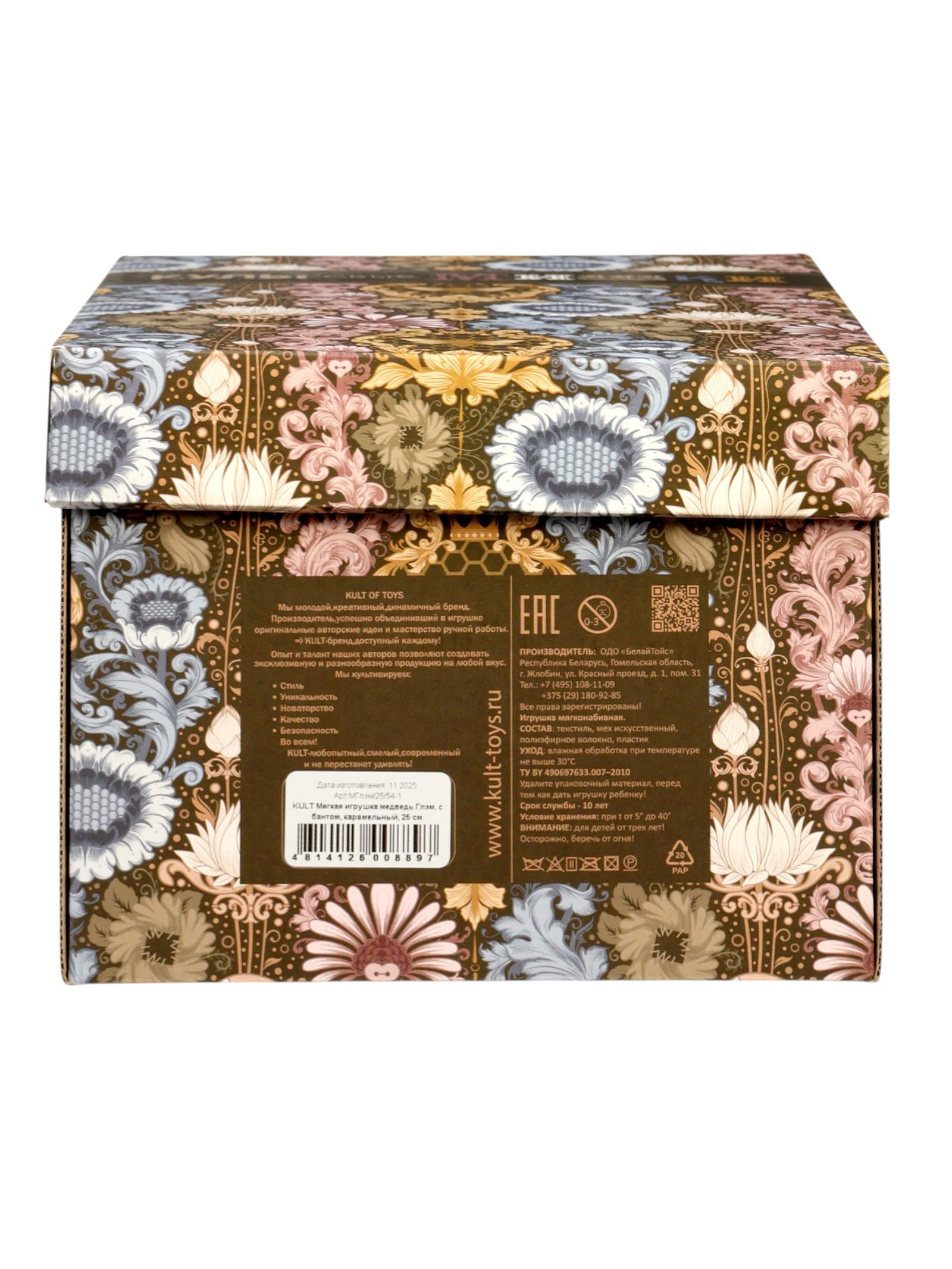 Мягкая игрушка "Медведь Глэм, с бантом", карамельная, 25 см, Kult of toys, Беларусь