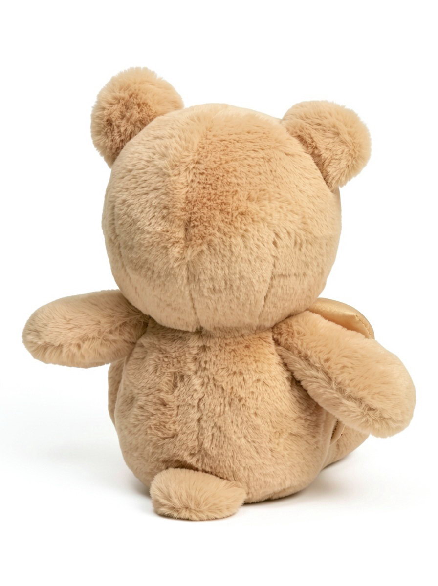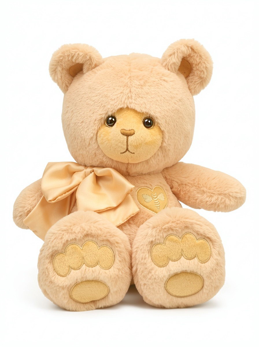 Размер упаковки: 23 x 17 x 28 см. tnved: 9503004000 Температурное ограничение: Нет Цвет: Жёлтый Высота, см: 25 Вид: Медведь Особенности: Без особенностей Тематика: Наземные животные Наполнитель: Синтепон Мягкая игрушка "Медведь Глэм, с бантом" это мишка, который выглядит как маленькое солнышко в комнате. Карамельный оттенок очень тёплый и спокойный, а большой бант добавляет нарядности и делает игрушку сразу "подарочной". Размер удобный для объятий, его легко взять с собой, посадить на кровать или поставить на полку как уютный акцент. Глэм приятно держать в руках и обнимать перед сном. Он не выглядит слишком "детским", поэтому часто нравится и детям, и взрослым, особенно тем, кто любит нежные цвета и аккуратные детали. Сердечко на груди и мягкие лапки создают милый образ, который отлично смотрится на фото и делает подарок более трогательным. Особенности