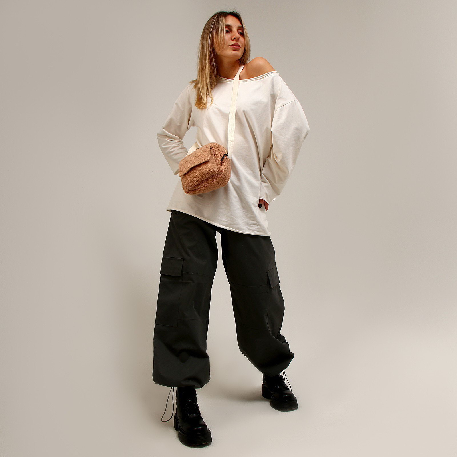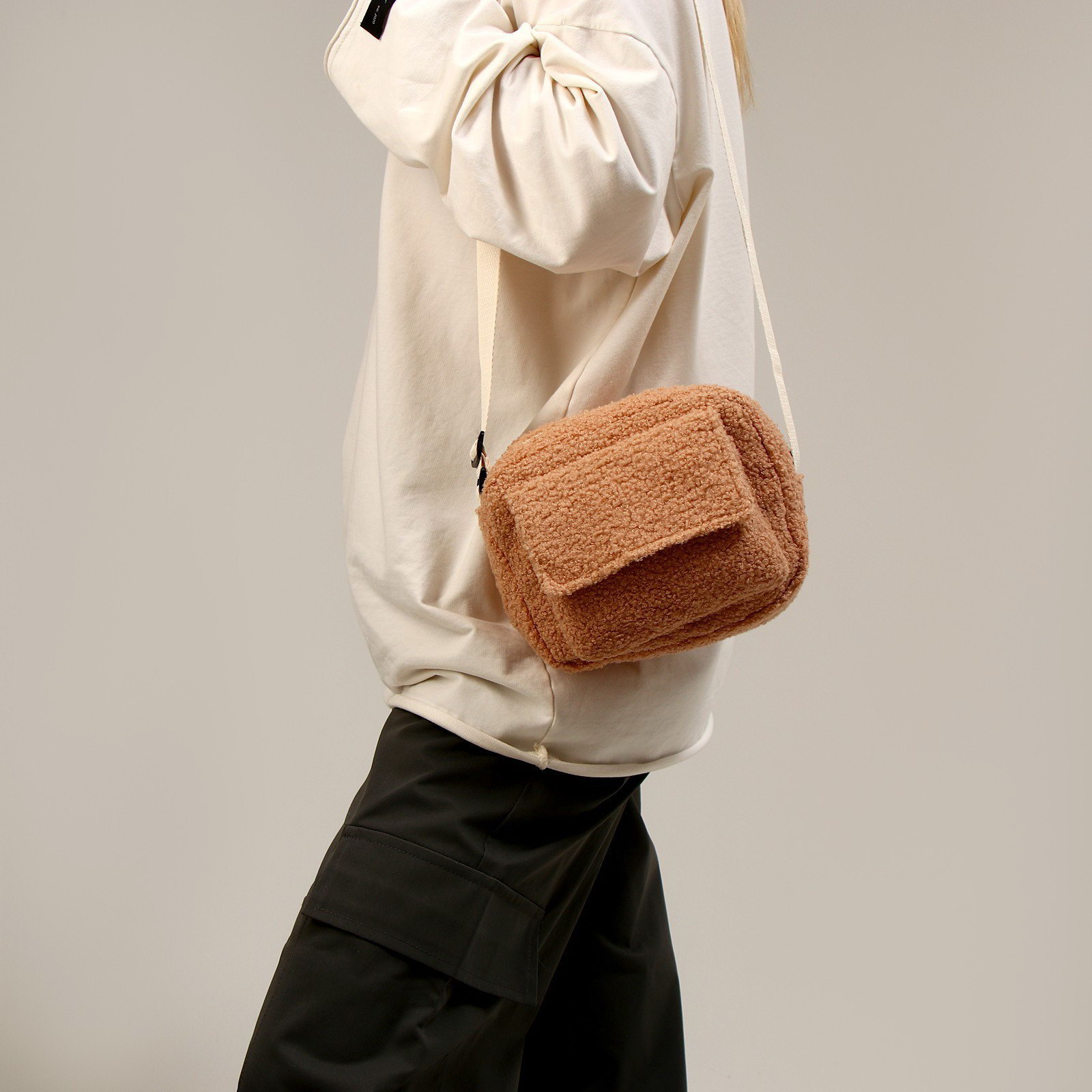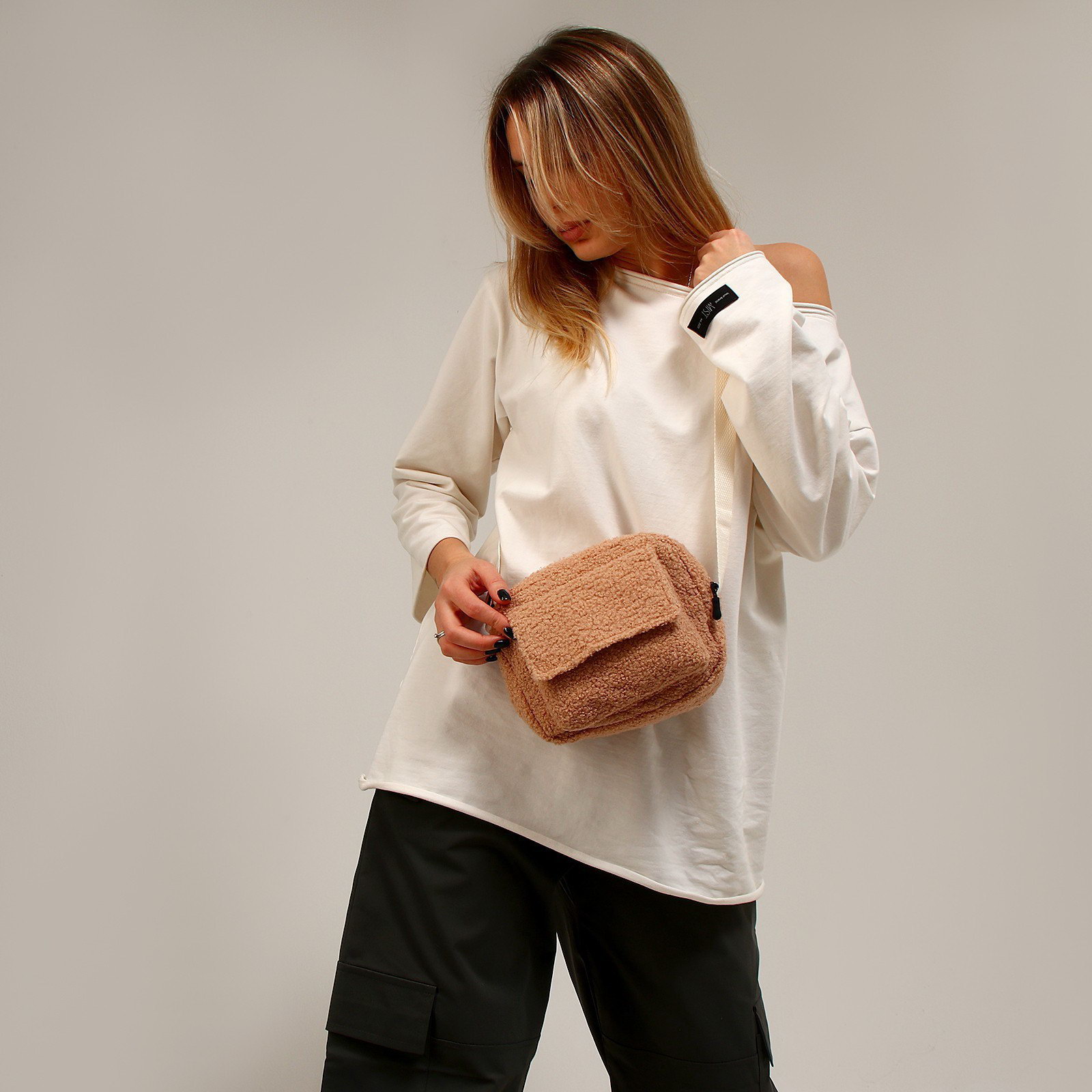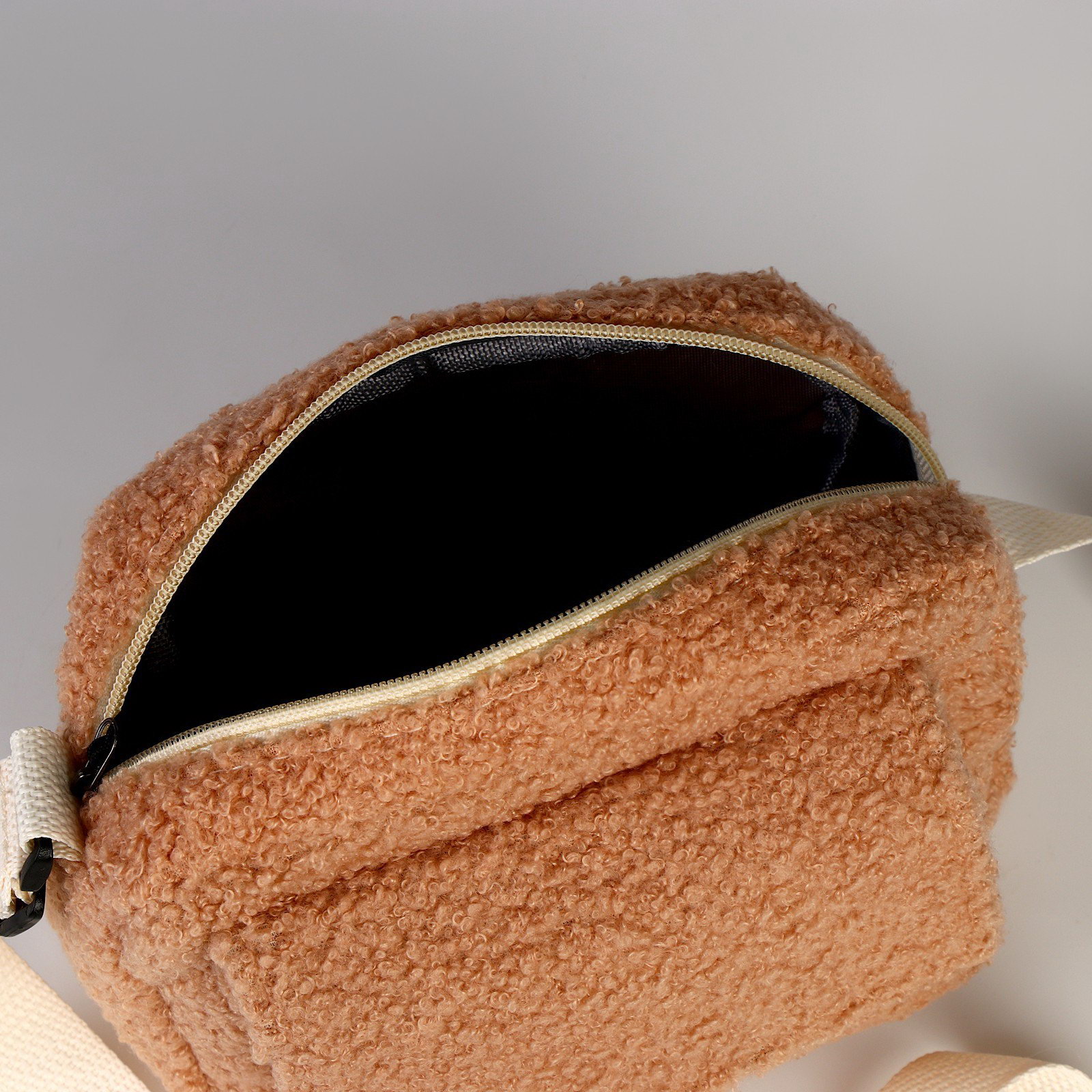 Плюшевая сумка тедди кросс-боди, бежевая, 16.5x21x10 см., Milo toys, Китай