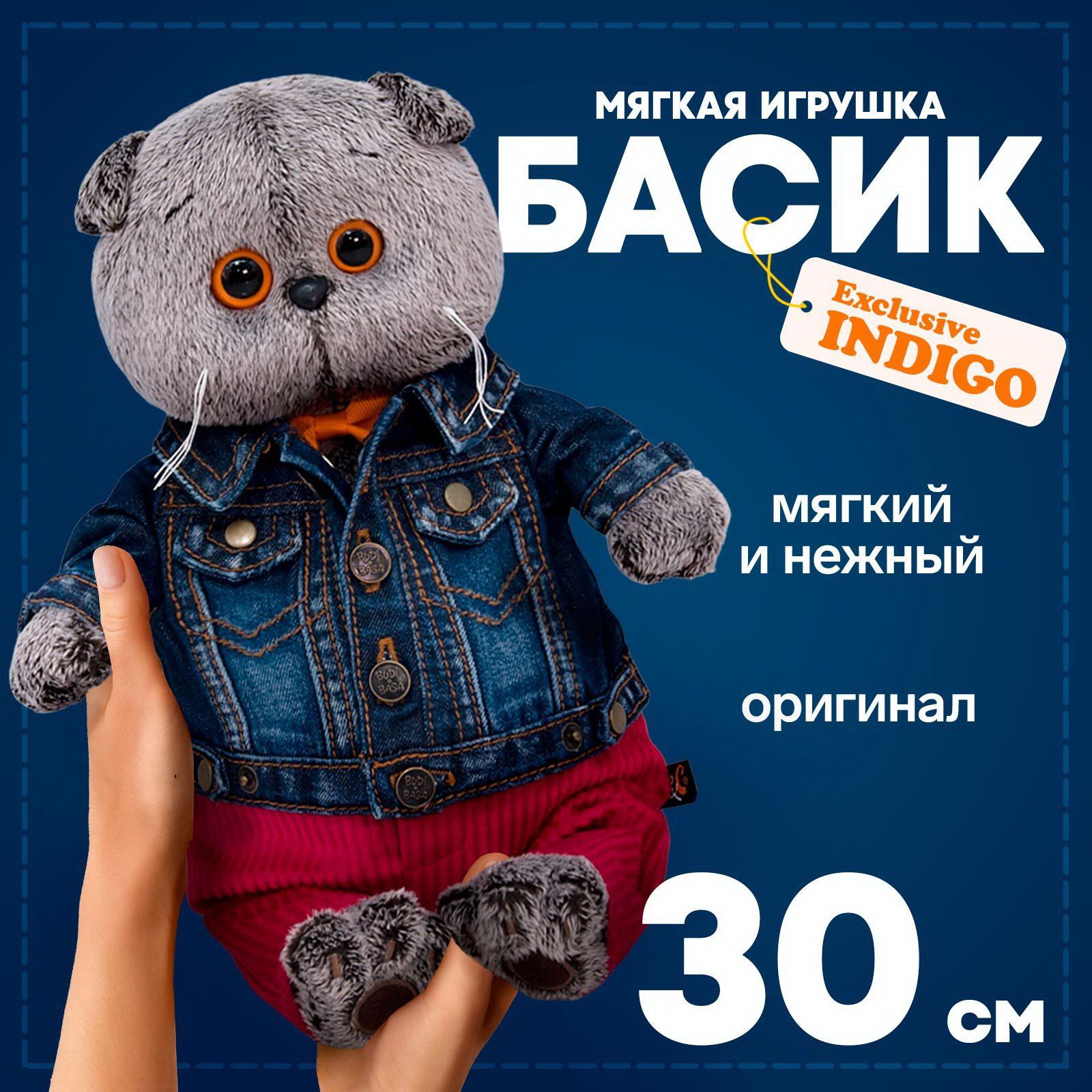 Мягкая игрушка "Басик в джинсовой куртке и малиновых штанах", 30 см, Басик и Ко, Россия