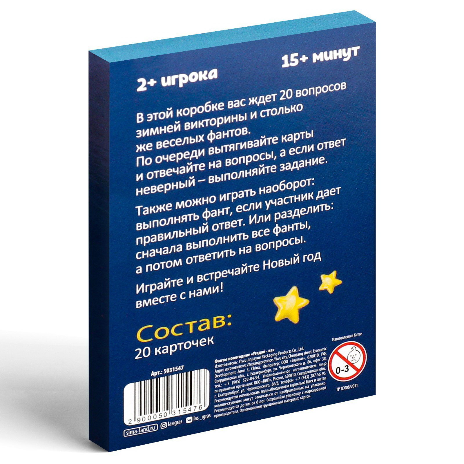 Новогодние фанты "Новый год: Угадай-ка", 20 карт, 6+, 6.5x9.5x1 см., ЛАС ИГРАС, Китай