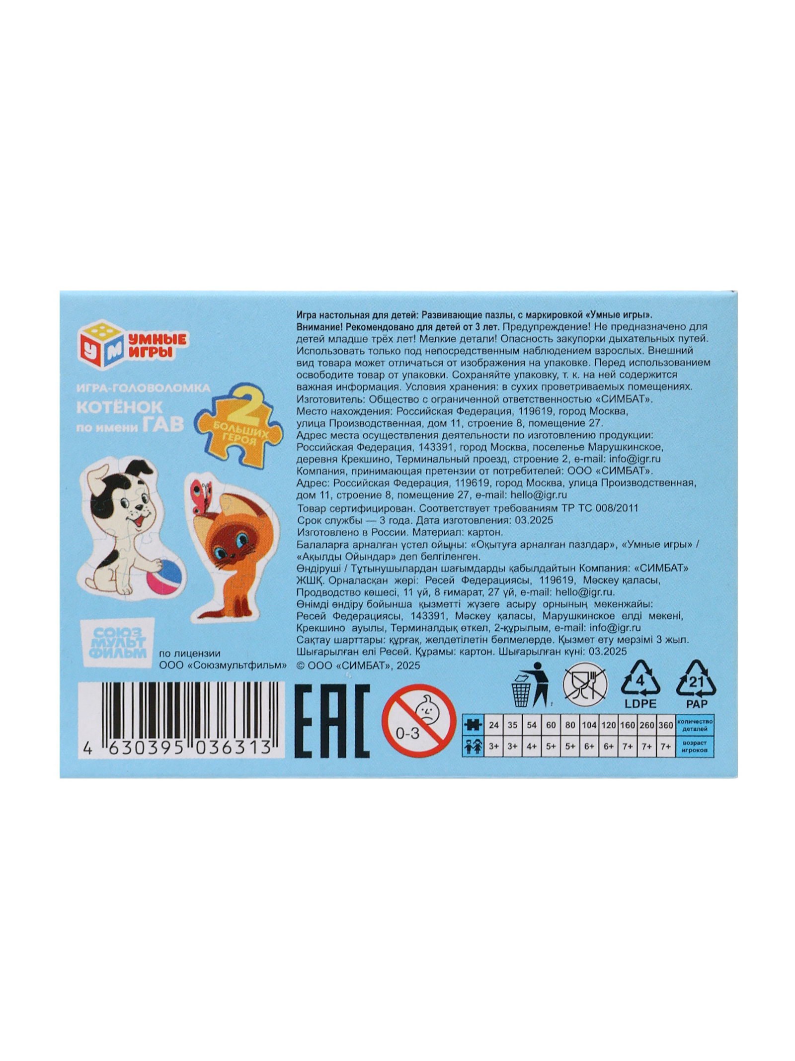 Игра - головоломка фигурная "Котёнок по имени Гав. Союзмультфильм", 2 пазла, Умные игры, Россия