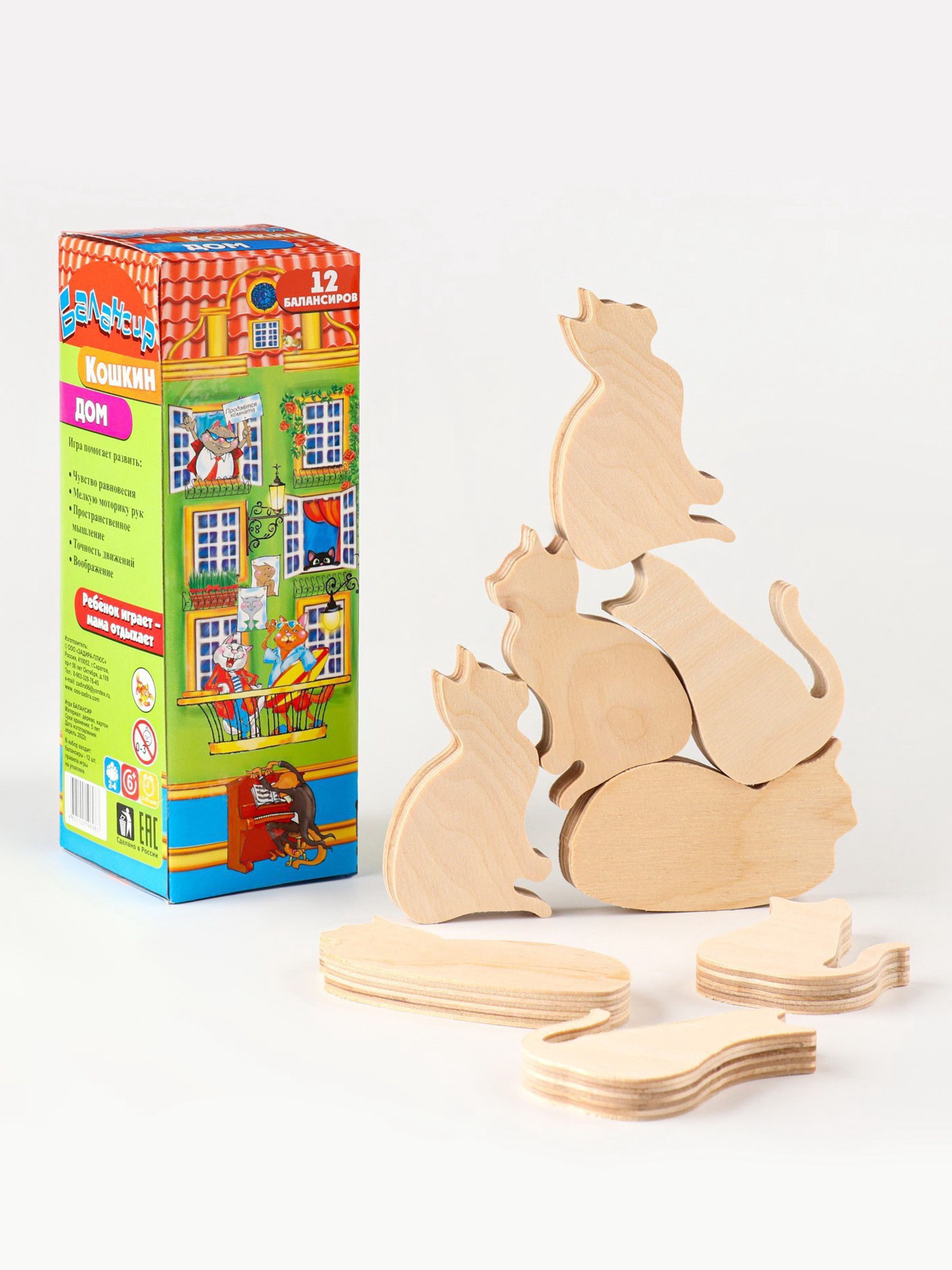 Настольная игра "Балансир. Кошкин дом", 12 элементов, МИКС, Задира-плюс, Россия