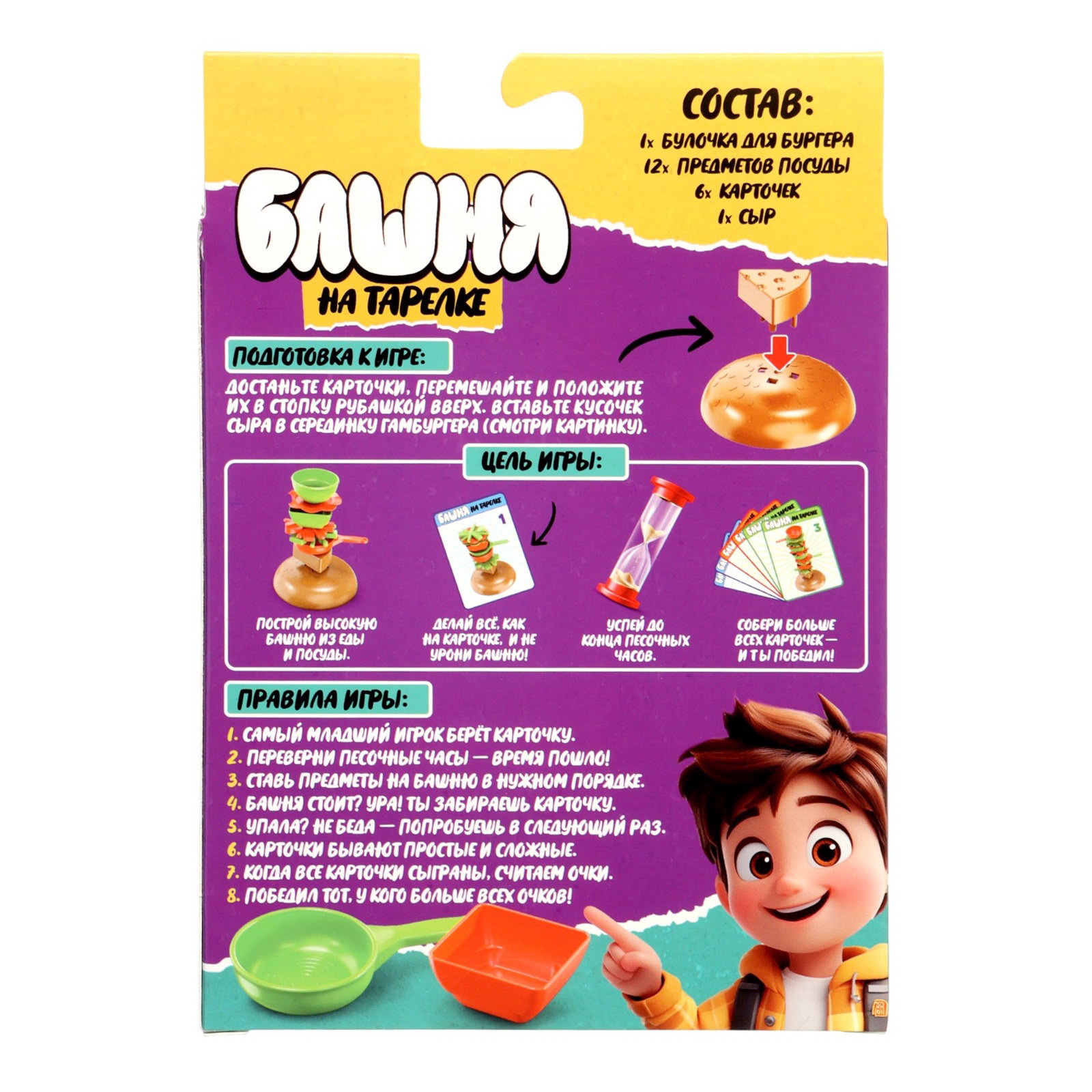 Развитие навыков: Внимание, Ловкость Размер упаковки: 4 x 18 x 12.5 см. tnved: 9504908000 Температурное ограничение: Нет Жанр игры: На реакцию и внимание Количество игроков: 2 Возраст: От 5 лет Для кого: Унисекс Настольная игра "Башня на тарелке" - весёлая игра на ловкость и внимание Настольная игра "Башня на тарелке" - увлекательная и динамичная игра для детей и всей семьи. В процессе игры участникам предстоит аккуратно размещать предметы, сохраняя равновесие конструкции. Игра развивает координацию движений, внимательность и аккуратность, а также дарит массу положительных эмоций. Преимущества игры:
