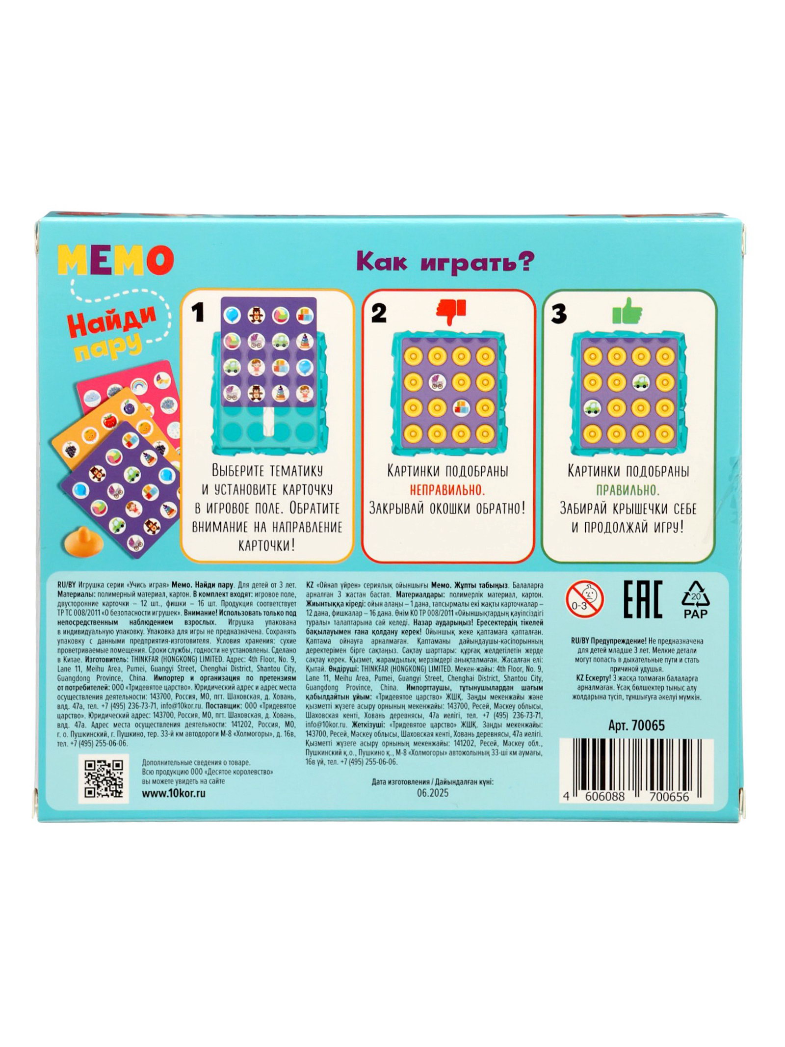 Настольная игра "Мемо. Найди пару", Десятое Королевство, Китай