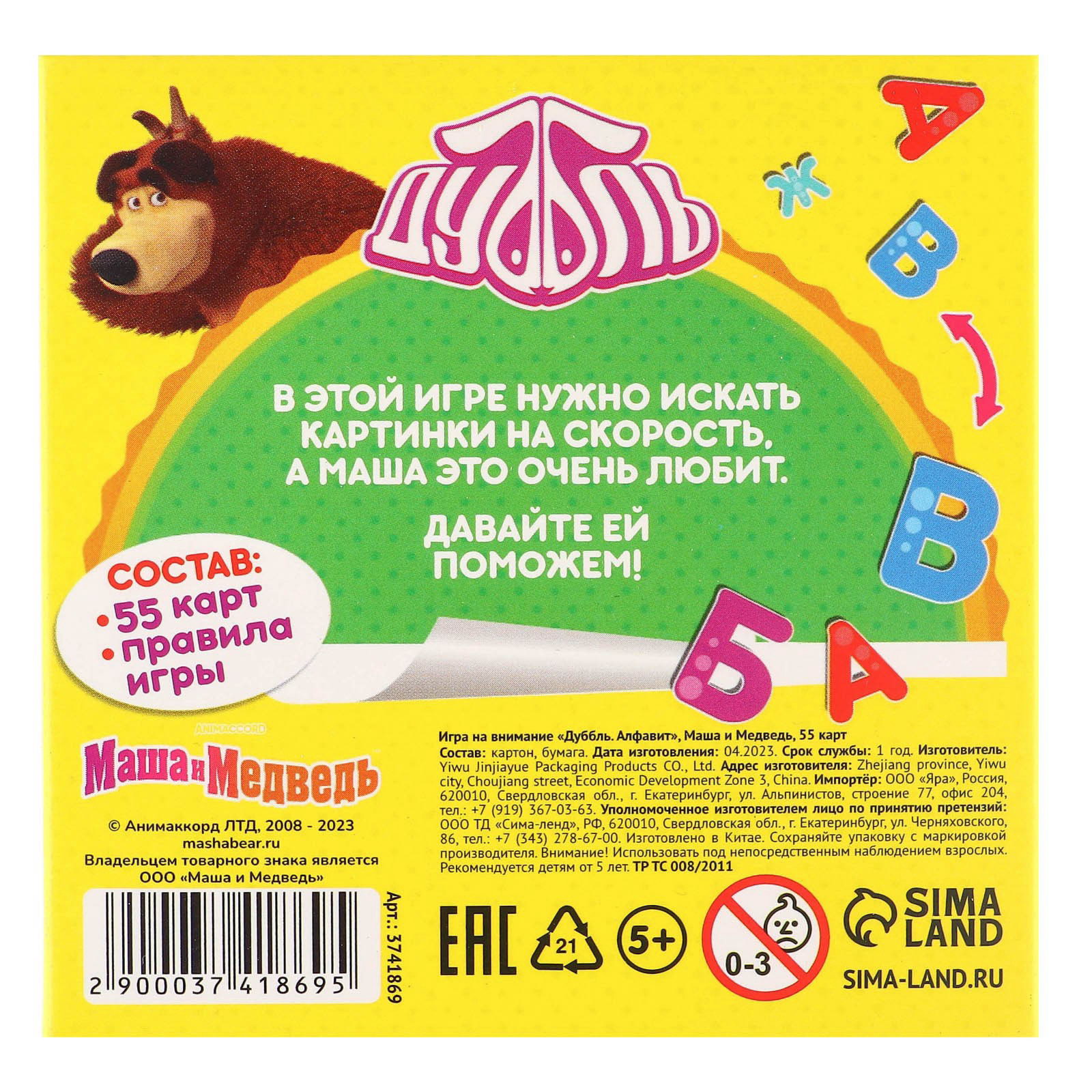 Настольная карточная игра на скорость и реакцию "Дуббль. Алфавит", 55 карт, 5+, 8.5x8.5x2.3 см., Маша и Медведь, Китай