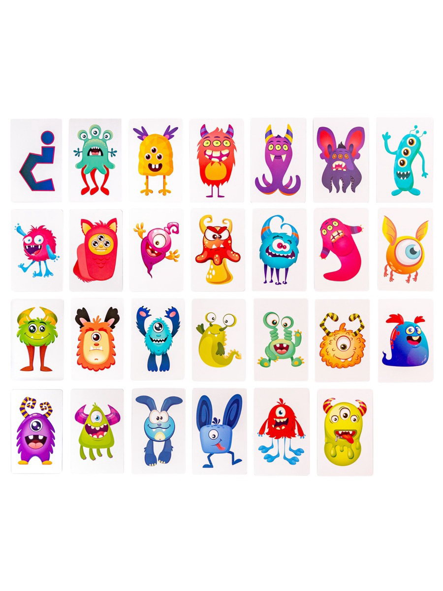 Развитие навыков: Внимание, Логика, Реакция Размер упаковки: 9 x 2.5 x 9 см. Для кого: Унисекс Возраст: От 3 лет Количество игроков: 2 - 4 игрока tnved: 9504908000 Температурное ограничение: Нет Жанр игры: На реакцию и внимание Не секрет, что существуют охотники за привидениями. Наша настольная игра "Поймай монстрика" приглашает поохотиться на монстриков! Как играть? Игра состоит из 28 карт: 1 карта-выручалка и 27 монстриков. Колода карточек раскладывается на столе таким образом: карта с вопросом посередине, остальные карточки – вокруг вопроса. В итоге должен образоваться прямоугольник (7 x 4). В игре "Поймай монстрика" три варианта игры. Мы опишем один вариант, остальные вы найдёте в правилах игры. После жеребьёвки первый игрок бросает сразу 3 кубика. Кубики позволяют определить те или иные свойства монстриков (количество глаз и ног и наличие рук, рогов и ушей). Несмотря на то, что кубики бросил первый игрок, ищут нужного монстрика все игроки. Тот игрок, что первым смог определить монстрика по свойствам, выпавшим на кубиках, забирает карту себе. Далее ход переходит к следующему игроку. Игра продолжается до тех пор, пока участники не словят всех монстриков. Чей улов окажется большим, тот и победил! | ||