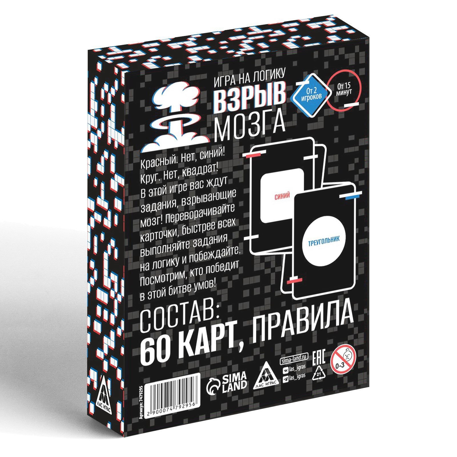 Настольная игра на логику "Взрыв мозга", 60 карт, 12+, 9.5x3.3x12.5 см., ЛАС ИГРАС, Китай