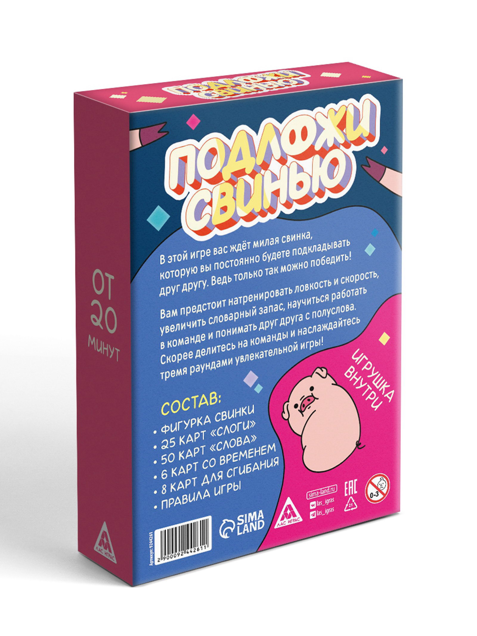 Настольная игра "Подложи свинью", 89 карты, 8+, 10.5x3.3x15.5 см., ЛАС ИГРАС, Китай
