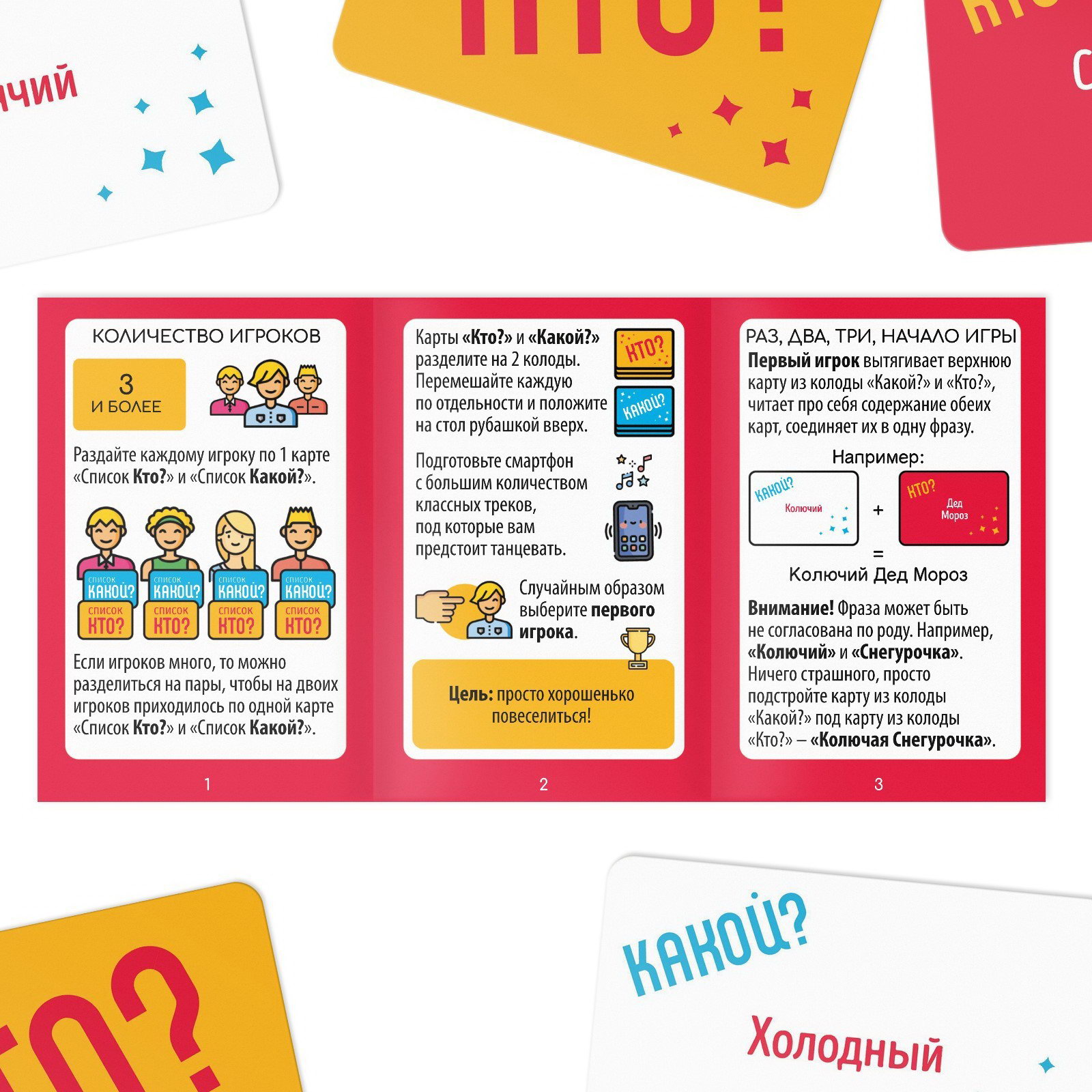 Количество игроков: [3,6], От 3 игроков Размер упаковки: 9.5 x 12.5 x 3.5 см. tnved: 9504400000 tnved: 9504400000 Символ года: Нет Время игры: 20 минут Тематика праздника: Новый год Возраст: От 10 лет Жанр игры: Ассоциации Холодный похититель Рождества, шуршащий пингвин… Точно, это кислая балерина! В этой игре вам предстоит изображать персонажей с помощью танца. Чем зажигательнее вы двигаетесь, тем быстрее остальные игроки отгадают вашего персонажа. Благодаря этой игре можно: